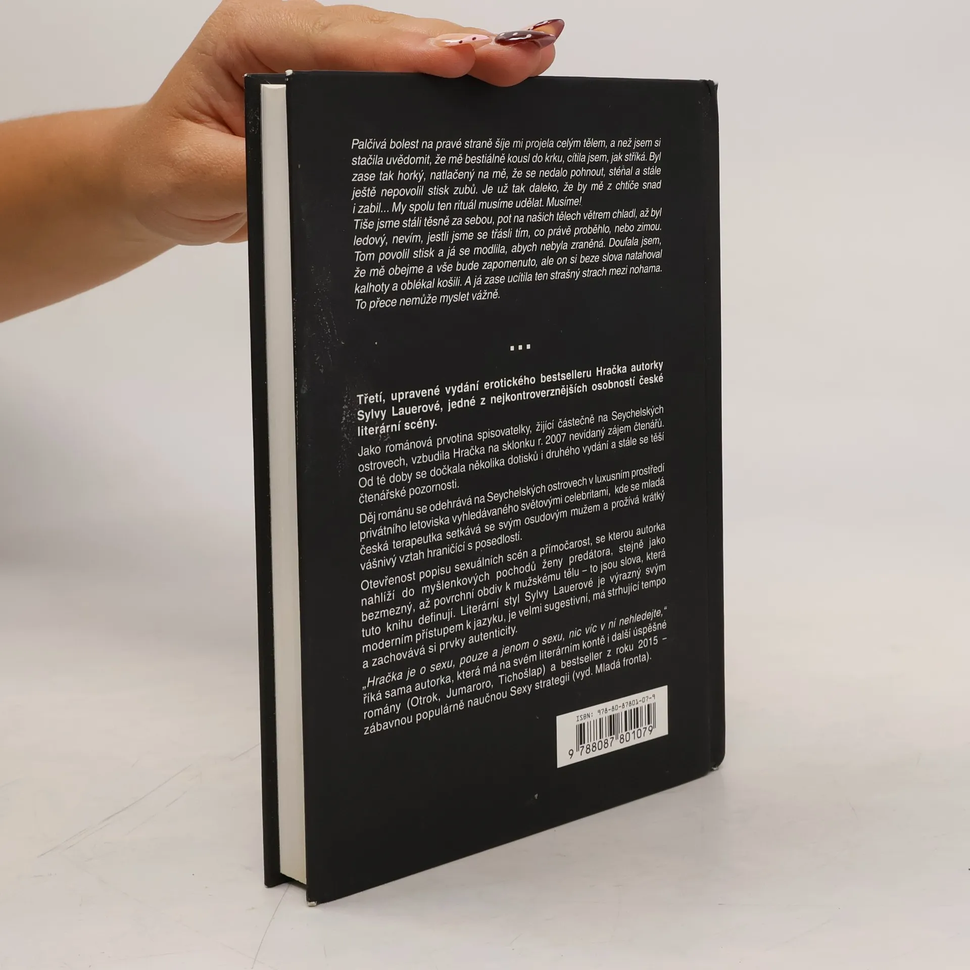 Hračka je o sexu, pouze o sexu a zase jen o sexu... ...a pak ještě o lásce a posedlosti a manipulaci. třetí, upravené vydání erotického bestselleru Hračka autorky Sylvy Lauerové (Otrok, Michael2007, ed. Královny slz a ostružin), jedné z nejkontroverznějších osobností české literární scény. Jako románová prvotina spisovatelky, žijící trvale na Seychelských ostrovech, vzbudila Hračka na sklonku r. 2007 nevídaný zájem čtenářů. Od té doby se již dočkala dvou dotisků a stále se těší čtenářské pozornosti. Děj románu se odehrává na Seychelských ostrovech, v exotickém ráji, kam noha běžného smrtelníka téměř nevkročí. Luxusní prostředí privátního letoviska, vyhledávaného světovými celebritami, je popsáno pohledem mladé české ženy. Ta se zde setkává se svým osudovým mužem a prožívá vášnivý a intenzivní vztah, hraničící s posedlostí. Literární styl Sylvy Lauerové je výrazný svým moderním přístupem k jazyku, je velmi sugestivní, má strhující tempo a zachovává si prvky autenticity. Syrovost sexuálních scén a přímočará otevřenost, se kterou autorka nahlíží do myšlenkových pochodů ženy-predátora, činí z této knihy zcela výjimečnou sondu do intimního vyjádření ženské emancipace, sahající za hranice normality. Bezmezný, až povrchní obdiv k mužskému tělu, sex, okultní rituály - to jsou slova, která tuto knihu definují. A přestože je o lásce, rozkrývá nebezpečnou a zraňující hru lidského ega, spojenou s tělesnou touhou a manipulací.