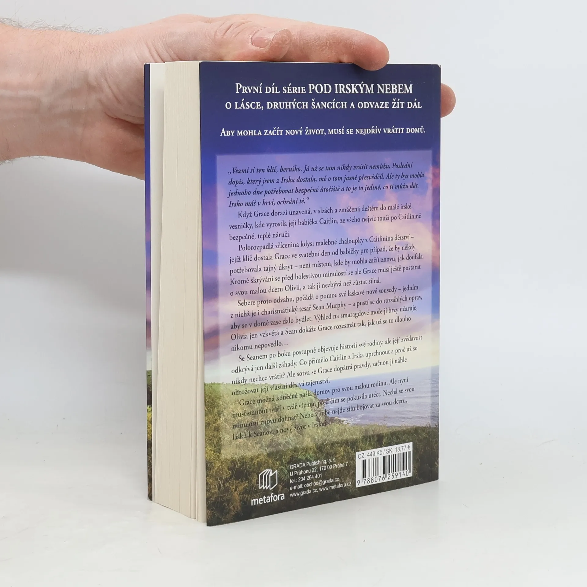 Když Grace dorazí unavená, v slzách a zmáčená deštěm do malé irské vesničky, kde vyrostla její babička Caitlin, ze všeho nejvíc touží po Caitlinině bezpečné, teplé náruči. Polorozpadlá zřícenina kdysi malebné chaloupky z Caitlinina dětství – jejíž klíč dostala Grace ve svatební den od babičky pro případ, že by někdy potřebovala tajný úkryt – není místem, kde by mohla začít znovu, jak doufala. Kromě skrývání se před bolestivou minulostí se ale Grace musí ještě postarat o svou malou dceru Olivii, a tak jí nezbývá než zůstat silná. Sebere proto odvahu, požádá o pomoc své laskavé nové sousedy – jedním z nichž je i charismatický tesař Sean Murphy – a pustí se do rozsáhlých oprav, aby se v domě zase dalo bydlet. Výhled na smaragdové moře jí brzy učaruje, Olivia jen vzkvétá a Sean dokáže Grace rozesmát tak, jak už se to dlouho nikomu nepovedlo… Se Seanem po boku postupně objevuje historii své rodiny, ale její zvědavost odkrývá jen další záhady. Co přimělo Caitlin z Irska uprchnout a proč už se nikdy nechce vrátit? Ale sotva se Grace dopátrá pravdy, začnou ji náhle ohrožovat její vlastní děsivá tajemství. Grace možná konečně našla domov pro svou malou rodinu. Ale nyní musí stanout tváří v tvář všemu, před čím se pokusila utéct. Nechá se svou minulostí znovu dohnat? Nebo v sobě najde sílu bojovat za svou dceru, lásku k Seanovi a nový život v Irsku?