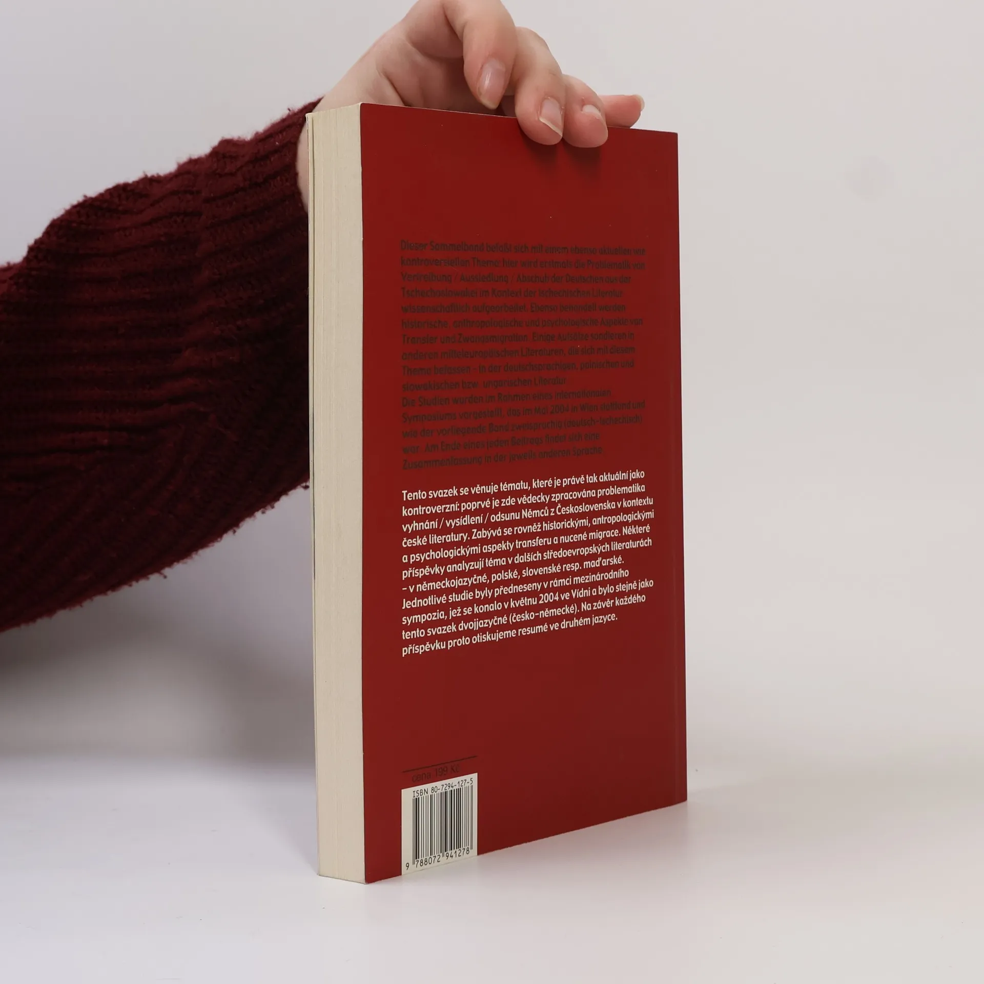 Tento svazek se zabývá tématem, které je právě tak aktuální jako kontroverzní: poprvé je zde vědecky zpracována problematika vyhnání / vysídlení / odsunu Němců z Československa v kontextu české literatury. Zabývá se rovněž historickými, antropologickými a psychologickými aspekty transferu a nucené migrace. Některé příspěvky analyzují téma v dalších středoevropských literaturách - v německojazyčné, polské, slovenské resp. maďarské. Jednotlivé studie byly předneseny v rámci mezinárodního symposia, jež se konalo v květnu 2004 ve Vídni a bylo stejně jako tento svazek dvojjazyčné (česko-německé). Na závěr každého příspěvku proto otiskujeme resumé ve druhém jazyce.