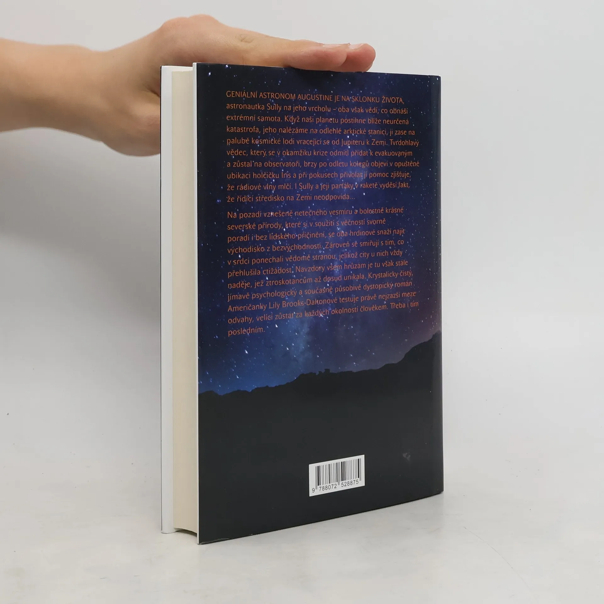Geniální astronom Augustine se nachází na sklonku života, zatímco astronautka Sully je na vrcholu své kariéry. Oba však čelí extrémní samotě. Když planetu postihne katastrofa, Augustine je na odlehlé arktické stanici, zatímco Sully se vrací z Jupiteru na palubu kosmické lodi. Augustine, tvrdohlavý vědec, se odmítl evakuovat a zůstal na observatoři. Brzy po odletu kolegů objeví v opuštěné ubikaci holčičku Iris, ale zjistí, že rádiové vlny mlčí. Sully a její posádka se také obávají, když řídící středisko na Zemi neodpovídá. V netečném vesmíru a krásné severské přírodě se oba hrdinové snaží najít východisko z bezvýchodnosti a smiřují se s emocemi, které potlačili kvůli ctižádosti. Přestože čelí hrůzám, naděje, která jim dosud unikala, stále existuje. Tento román testuje meze odvahy a připomíná, jak důležité je zůstat člověkem. Autorka Lily Brooks-Daltonová žije v Los Angeles a její postapokalyptický román byl adaptován pro Netflix, kde George Clooney ztvárnil postavu Augieho.