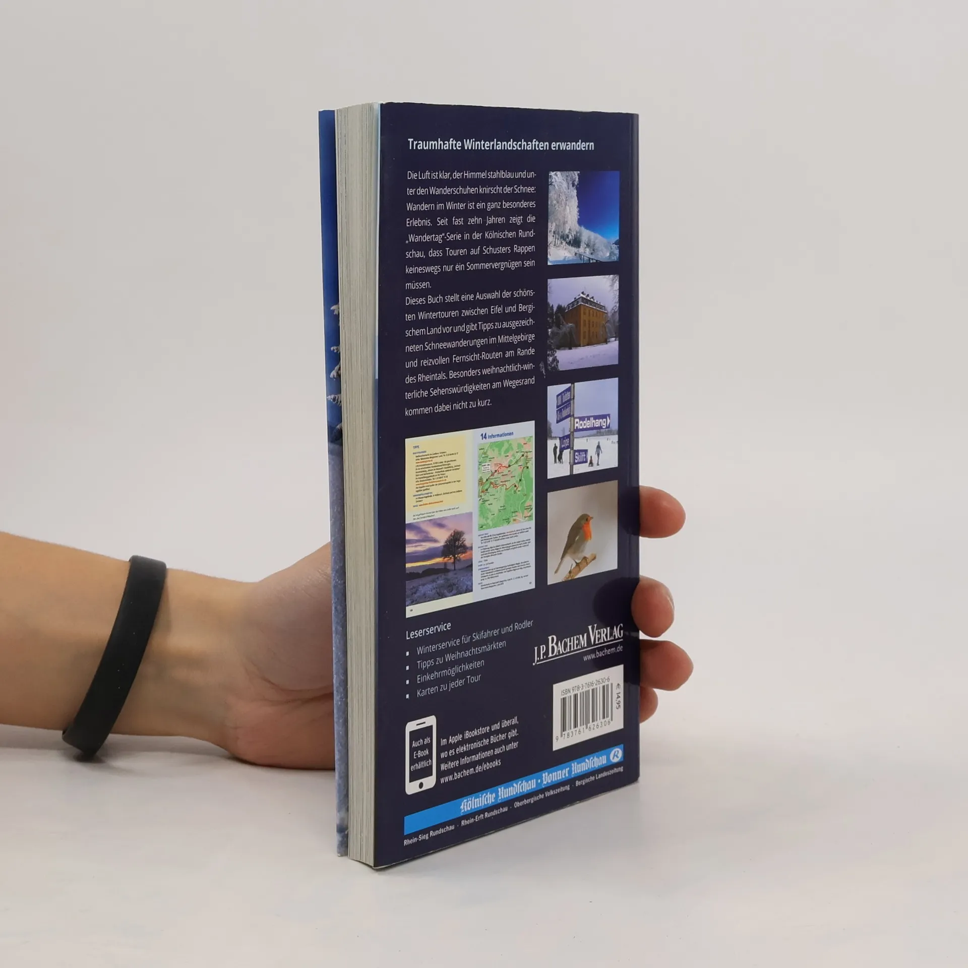 Die Luft ist klar, der Himmel stahlblau und unter den Wanderschuhen knirscht der Schnee: Wandern im Winter ist ein ganz besonderes Erlebnis. Seit fast zehn Jahren zeigt die „Wandertag“-Serie in der Kölnischen Rundschau, dass Touren auf Schusters Rappen keineswegs nur ein Sommervergnügen sein müssen. Dieses Buch stellt eine Auswahl der schönsten Wintertouren zwischen dem Oberbergischen und der Eifel vor, gibt Tipps zu ausgezeichneten Schneewanderungen im Mittelgebirge und reizvollen Fernsicht-Routen am Rande des Rheintals. Besondere weihnachtlich-winterliche Sehenswürdigkeiten am Wegesrand, von der Festtags-Ausstellung im Freilichtmuseum Lindlar bis hin zum Christkind-Postamt in Engelskirchen, kommen dabei nicht zu kurz.