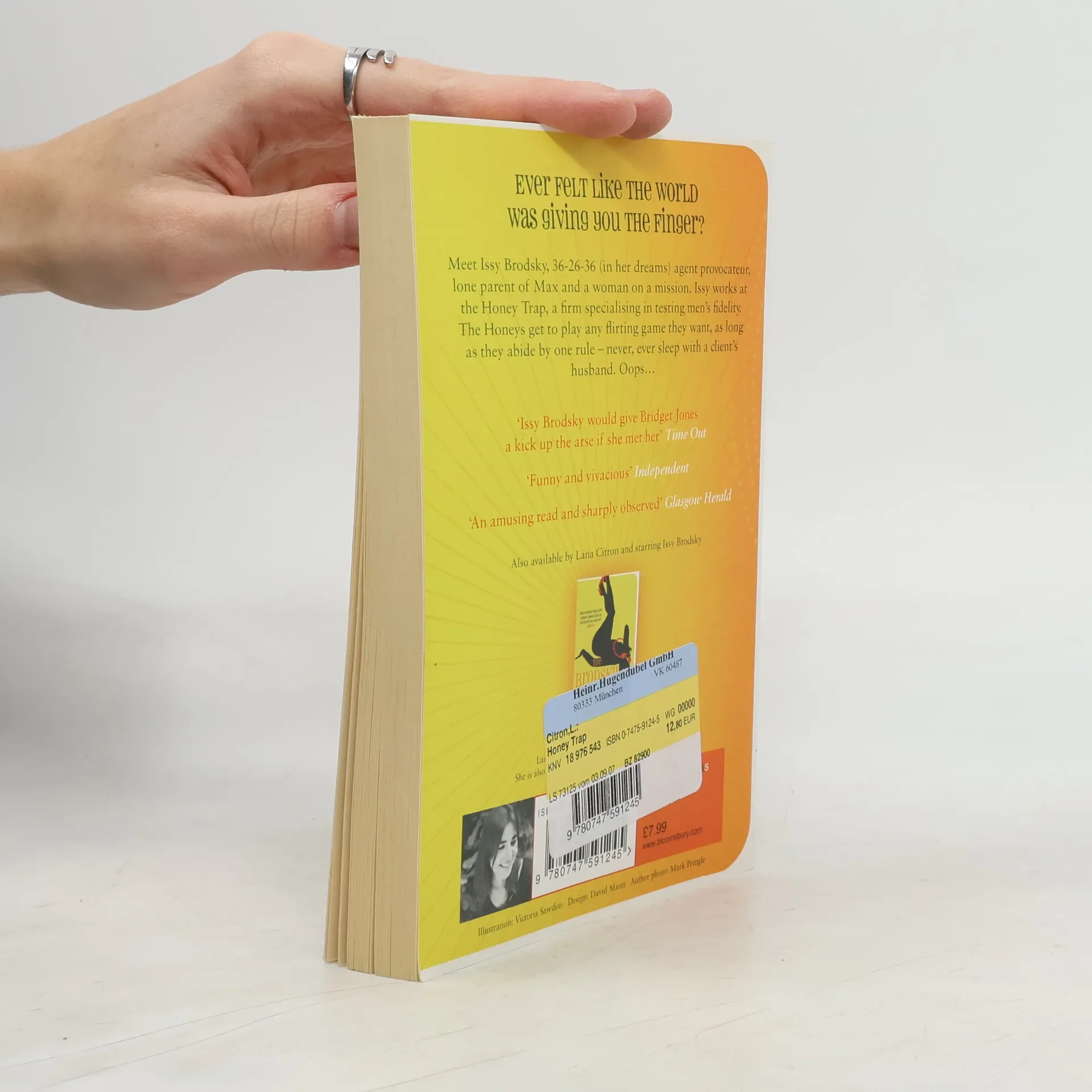 Issy Brodsky, single mum and single-digit income, finds a job compatible with her skills (laissez-faire attitude and flexible - thanks to the yoga). Now she works for the Honey Trap Detective Agency for a permanently premenstrual transgender boss. But what she hoped would be a simple nine-to-as-early-as-possible job becomes increasingly complicated due to a missing finger, a noisy neighbour, an angry Jewish client, an unsolved murder and a dose of chicken pox.