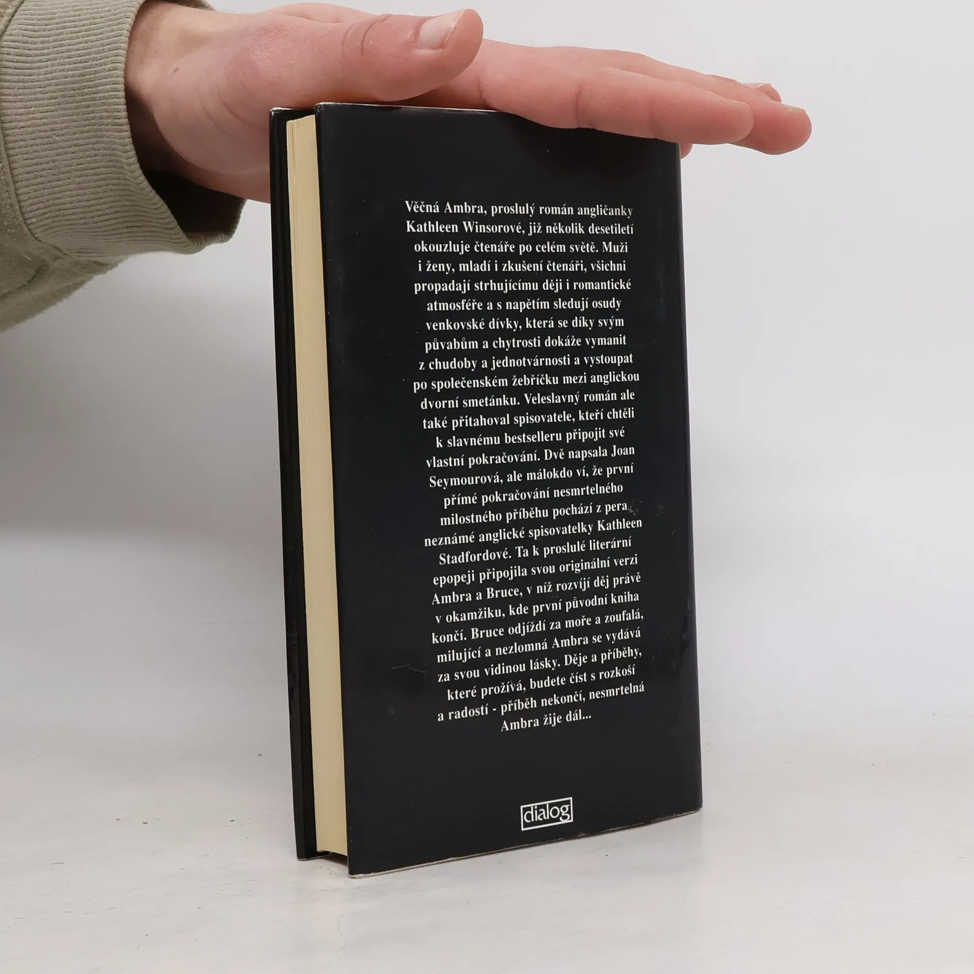 Podtitul: Přímé pokračování 1. dílu Věčná Ambra, proslulý román angličanky Kathleen Winsorové, již několik desetiletí okouzluje čtenáře po celém světě. Muži i ženy, mladí i zkušení čtenáři, všichni propadají strhujícímu ději i romantické atmosféře a s napětím sledují osudy venkovské dívky, která se díky svým půvabům a chytrosti dokáže vymanit z chudoby a jednotvárnosti a vystoupat po společenském žebříčku mezi anglickou dvorní smetánku. Veleslavný román ale také přitahoval spisovatele, kteří chtěli k slavnému bestselleru připojit své vlastní pokračování. Dvě napsala Joan Seymourová, ale málokdo ví, že první přímé pokračování nesmrtelného milostného příběhu pochází z pera neznámé anglické spisovatelky Kathleen Stadfordové. Ta k proslulé literární epopeji připojila svou originální verzi Ambra a Bruce, v níž rozvíjí děj právě v okamžiku, kde první původní kniha končí. Bruce odjíždí za moře a zoufalá, milující a nezlomná Ambra se vydává za svou vidinou lásky. Děje a příběhy, které prožívá, budete číst a rozkoší a radostí - příběh nekončí, nesmrtelná Ambra žije dál...