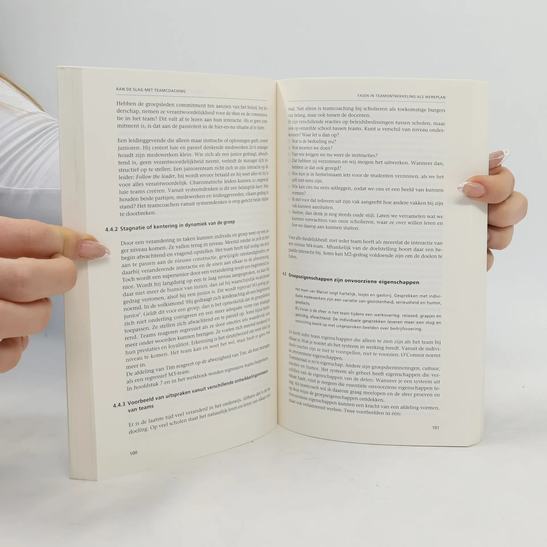 Zelf stelt de schrijfster in haar boek dat de vele boeken over zelfsturende teams een leemte achterlaten en de vraag 'hoe nu verder in de praktijk?' onbeantwoord laten. In haar boek probeert zij die leemte in te vullen en het belang van coachen in organisaties aan te tonen. Het draait dus om leidinggeven (coachen) en daarbij de medewerkers zelf laten nadenken over de effecten van het eigen gedrag. Lingsma benadert het leidinggeven vanuit haar werkterrein, de psychologie, en haar visie richt zich vooral op het zelfbewustzijn van de medewerkers en nieuwe manieren van communicatie. In het boek worden gesprekken tussen coach (de leidinggever) en medewerkers gedetailleerd weergegeven. In de praktijk is de theorie van de auteur zeker bruikbaar, al doet deze sterk denken aan het managementconcept 'interactive skills': systeemdenken binnen het kader van een perfecte communicatie, leidend tot de gewenste doelstellingen. Het boek is vlot geschreven en prettig leesbaar.