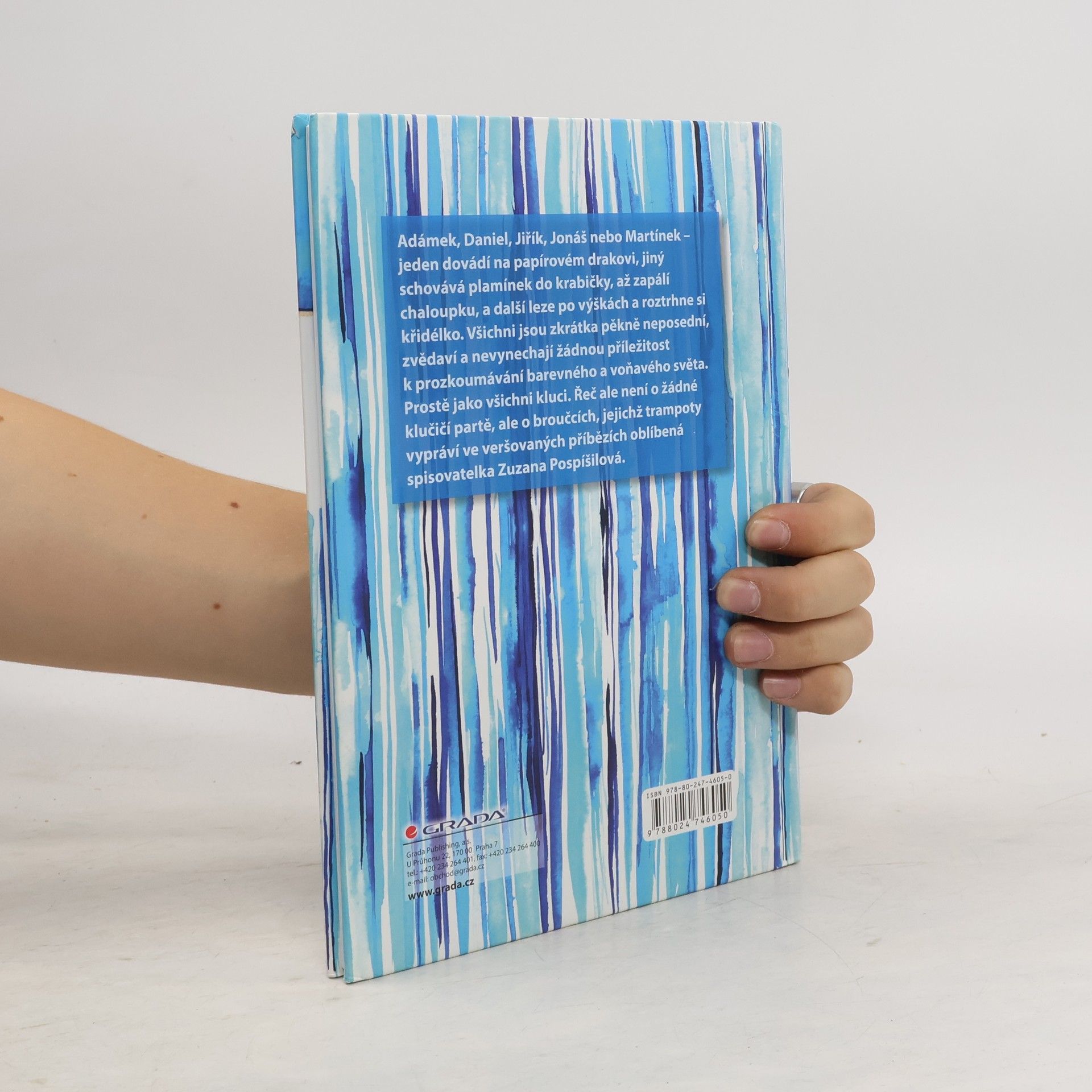 Adámek, Daniel, Jiřík, Jonáš nebo Martínek - jeden dovádí na papírovém drakovi, jiný schovává plamínek do krabičky, až zapálí chaloupku, a další leze po výškách a roztrhne si křidélko. Všichni jsou zkrátka pěkně neposední, zvědaví a nevynechají žádnou příležitost k prozkoumávání barevného a voňavého světa. Prostě jako všichni kluci. Řeč ale není o žádné klučičí partě, ale o broučcích, jejichž trampoty vypráví ve veršovaných příbězích oblíbená spisovatelka Zuzana Pospíšilová.
