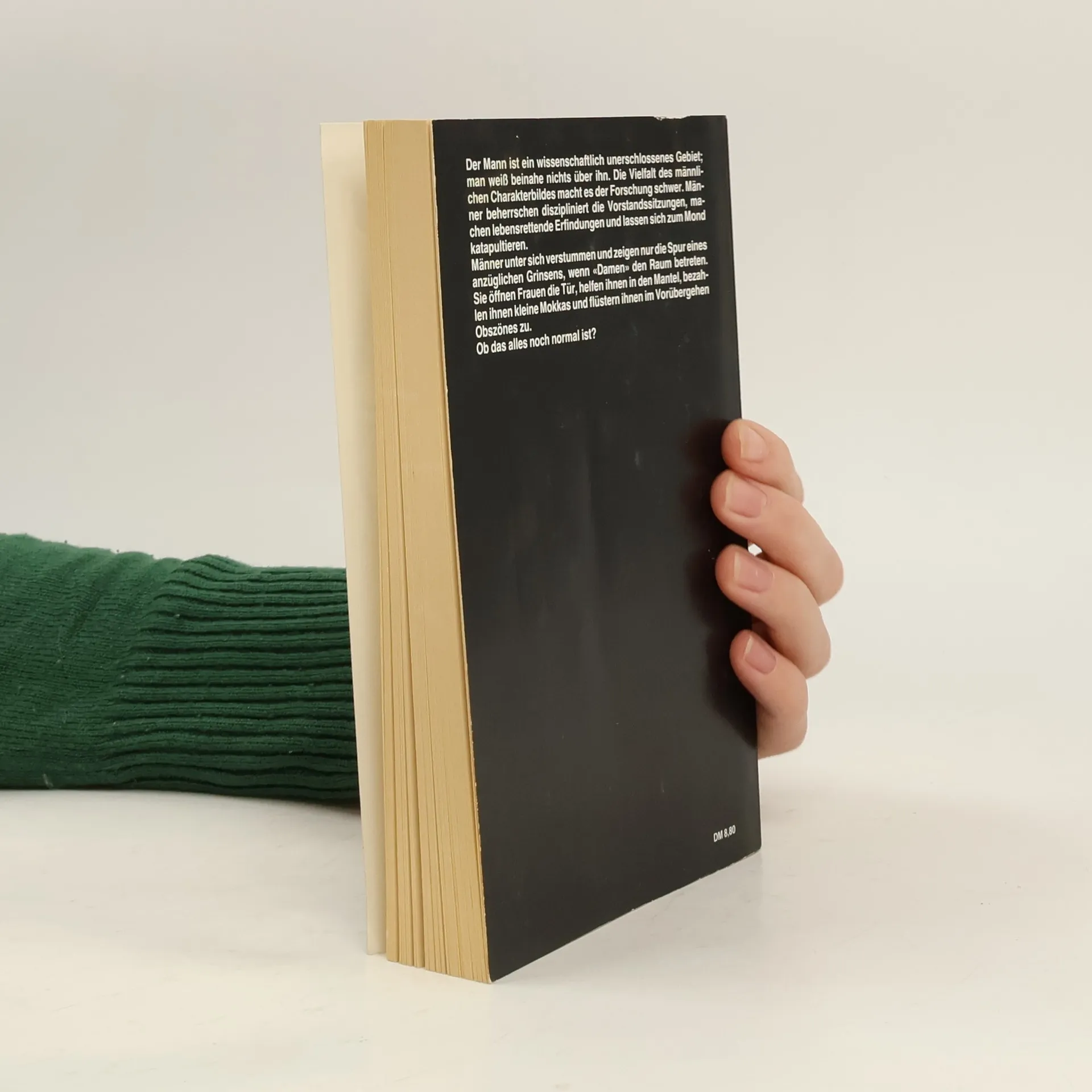 "Der Mann ist ein wissenschaftlich unerschlossenes Gebiet : man weiß beinahe nichts über ihn. Die Vielfalt des männlichen Charakterbildes macht es der Forschung schwer. Männer beherrschen diszipliniert die Vorstandssitzungen, machen lebensrettende Erfindungen und lassen sich zum Mond katapultieren. Männer unter sich verstummen und zeigen nur die Spur eines anzüglichen Grinsens, wenn "Damen" den Raum betreten. Sie öffnen Frauen die Tür, helfen ihnen in den Mantel, bezahlen ihnen kleine Mokkas und flüstern ihnen im Vorübergehen Obzönes zu. Ob das alles noch normal ist?"--Back cover.