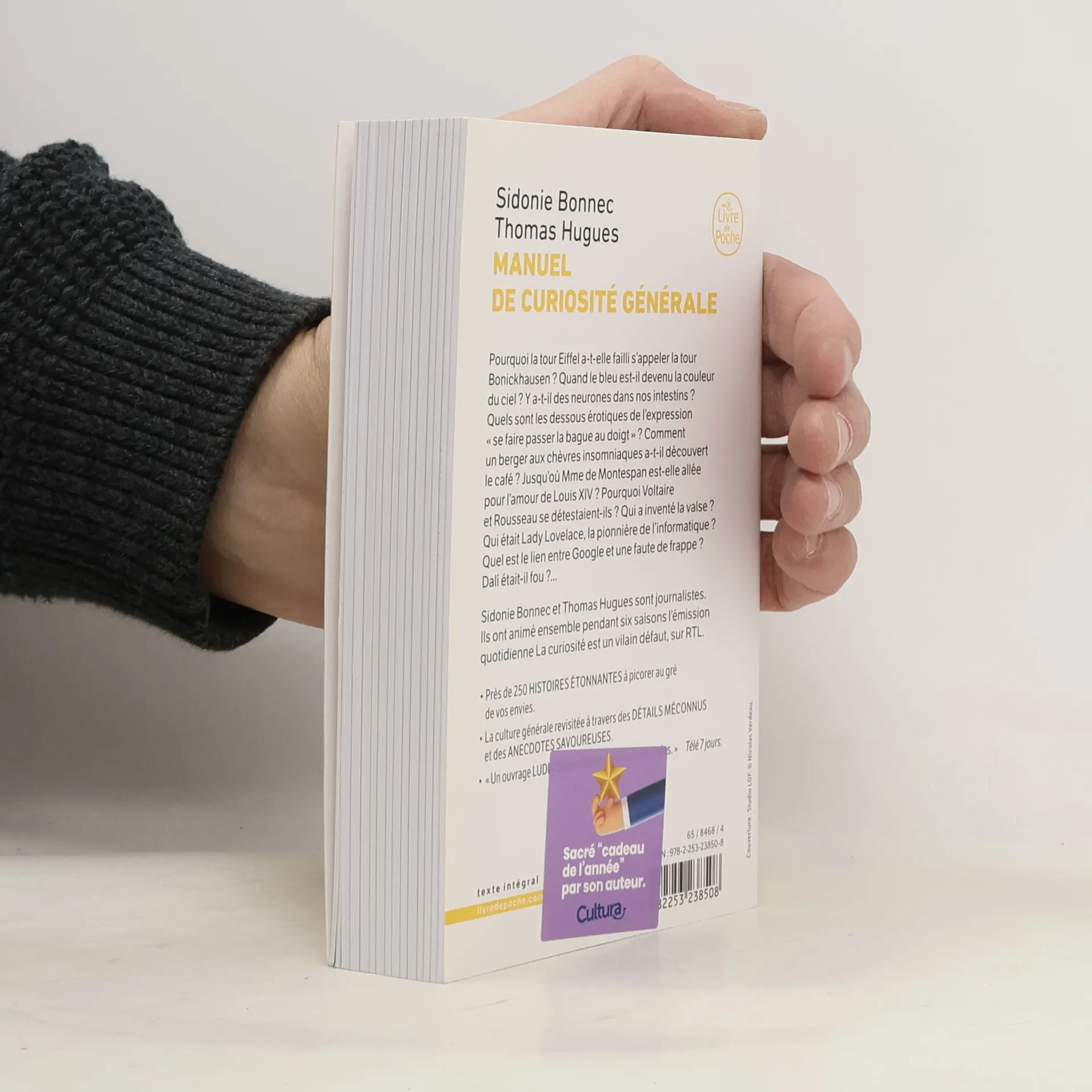 Pourquoi la tour Eiffel a-t-elle failli s'appeler la tour Bonickhausen ? Quand le bleu est-il devenu la couleur du ciel ?Y a-t-il des neurones dans nos intestins ? Quels sont les dessous érotiques de l'expression « l'affaire est dans le sac » ? Comment un berger aux chèvres insomniaques a-t-il découvert le café ? Jusqu'où la Montespan est-elle allée pour l'amour de Louis XIV ? Pourquoi Voltaire et Rousseau se détestaient-ils ? Qui a inventé la valse ? Qui était Lady Lovelace, la pionnière de l'informatique ? Quel est le lien entre Google et une faute de frappe ? Dalí était-il fou ?Sidonie Bonnec et Thomas Hugues sont journalistes. Ils ont animé ensemble pendant six saisons l'émission quotidienne La curiosité est un vilain défaut sur RTL.· 250 HISTOIRES ÉTONNANTES à picorer au gré de vos envies.· La culture générale revisitée à travers des DÉTAILS MÉCONNUS et des ANECDOTES SAVOUREUSES.· « Un ouvrage LUDIQUE à mettre entre toutes les mains. » Télé 7 jours.