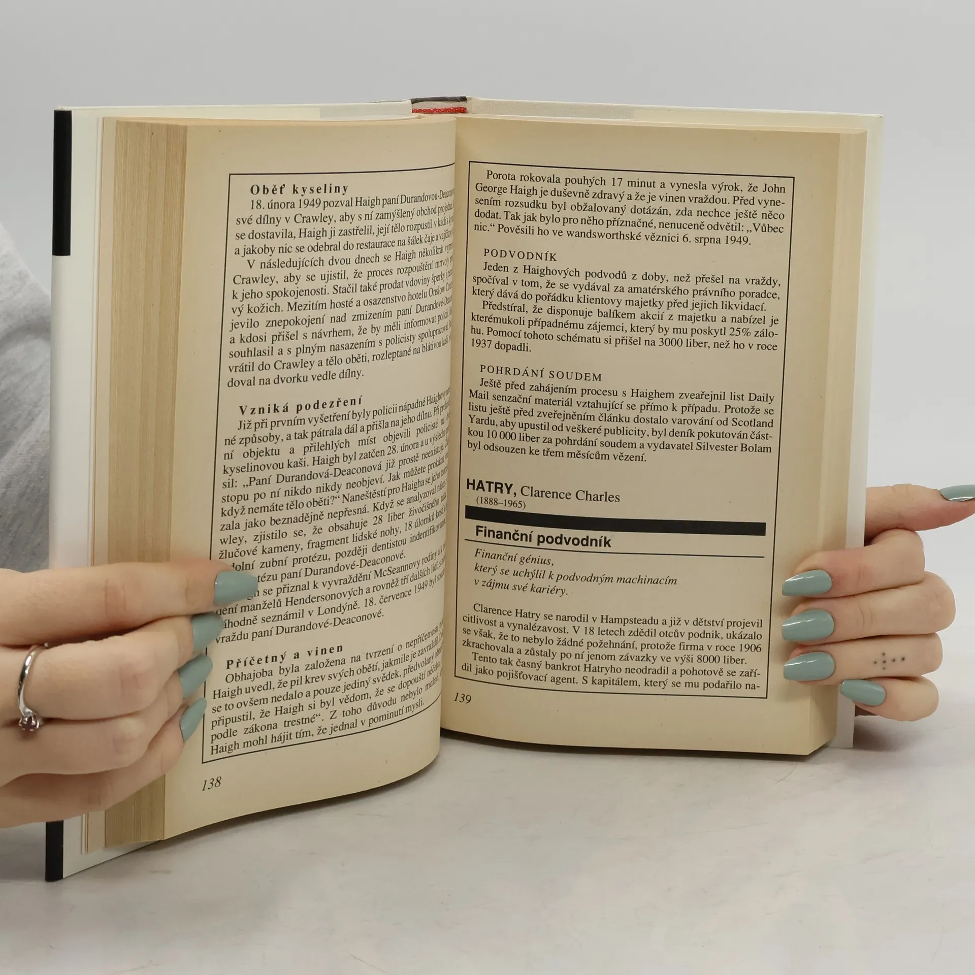 Kniha obsahuje, v abecedním pořadí podle pachatelů, výčet nejznámějších soudních případů, loupeží, vražd apod. z historie i současnosti.
