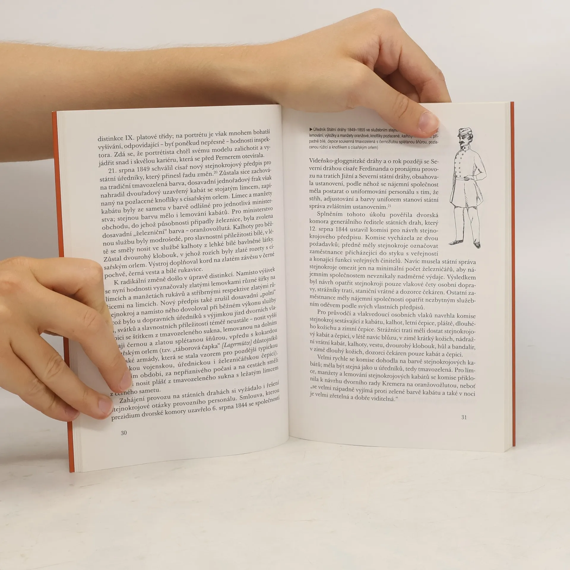 Podtitul: dějiny železničního stejnokroje v Českých zemích a na Slovensku. Kniha věnovaná stejnokroji železničářů na území České republiky a Slovenska sleduje vývoj uniformy, odráží dobové trendy v odívání i sociální význam oděvu.
