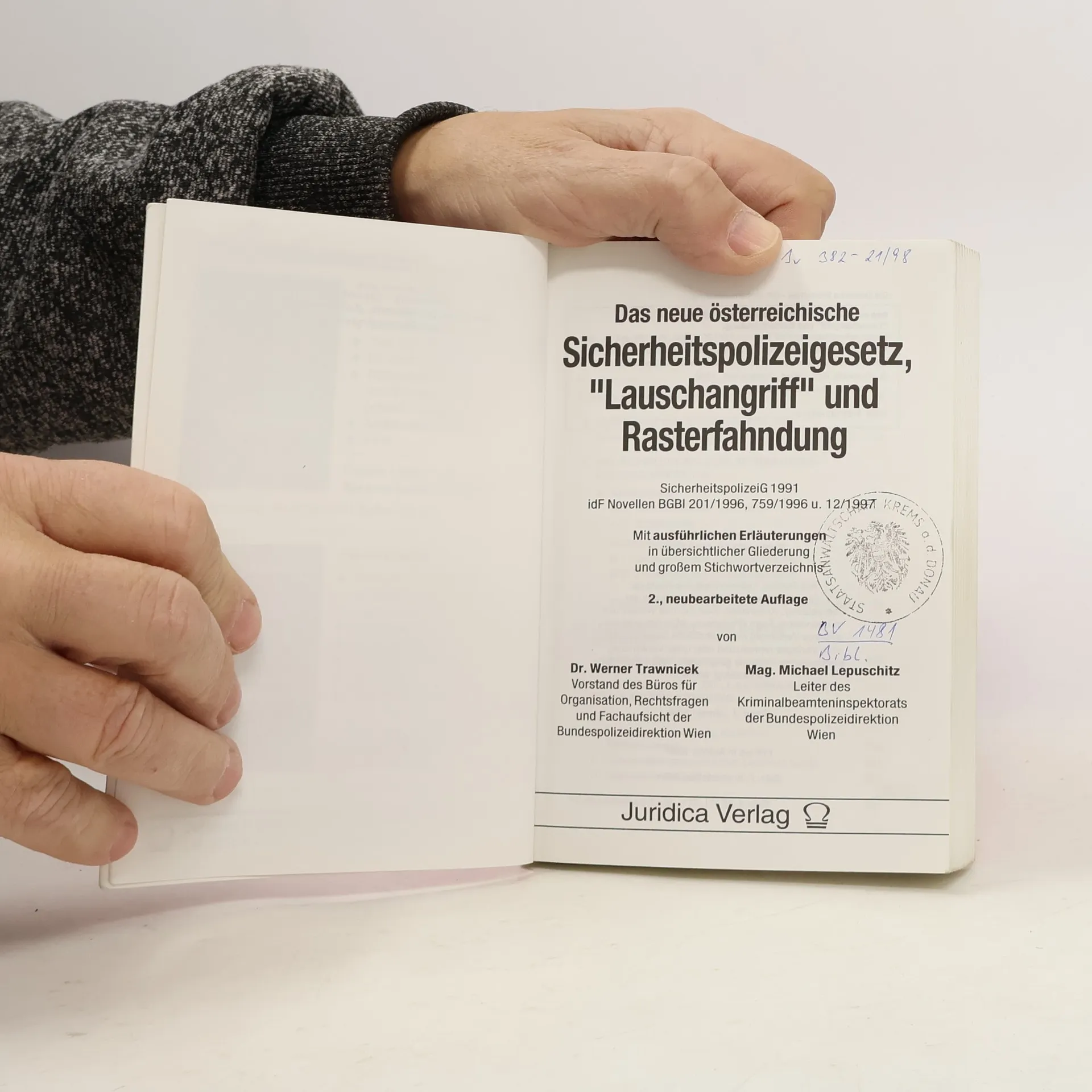 Das neue österreichische Sicherheitspolizeigesetz, "Lauschangriff" und Rasterfahndung, Werner Trawnicek, Michael Lepuschitz