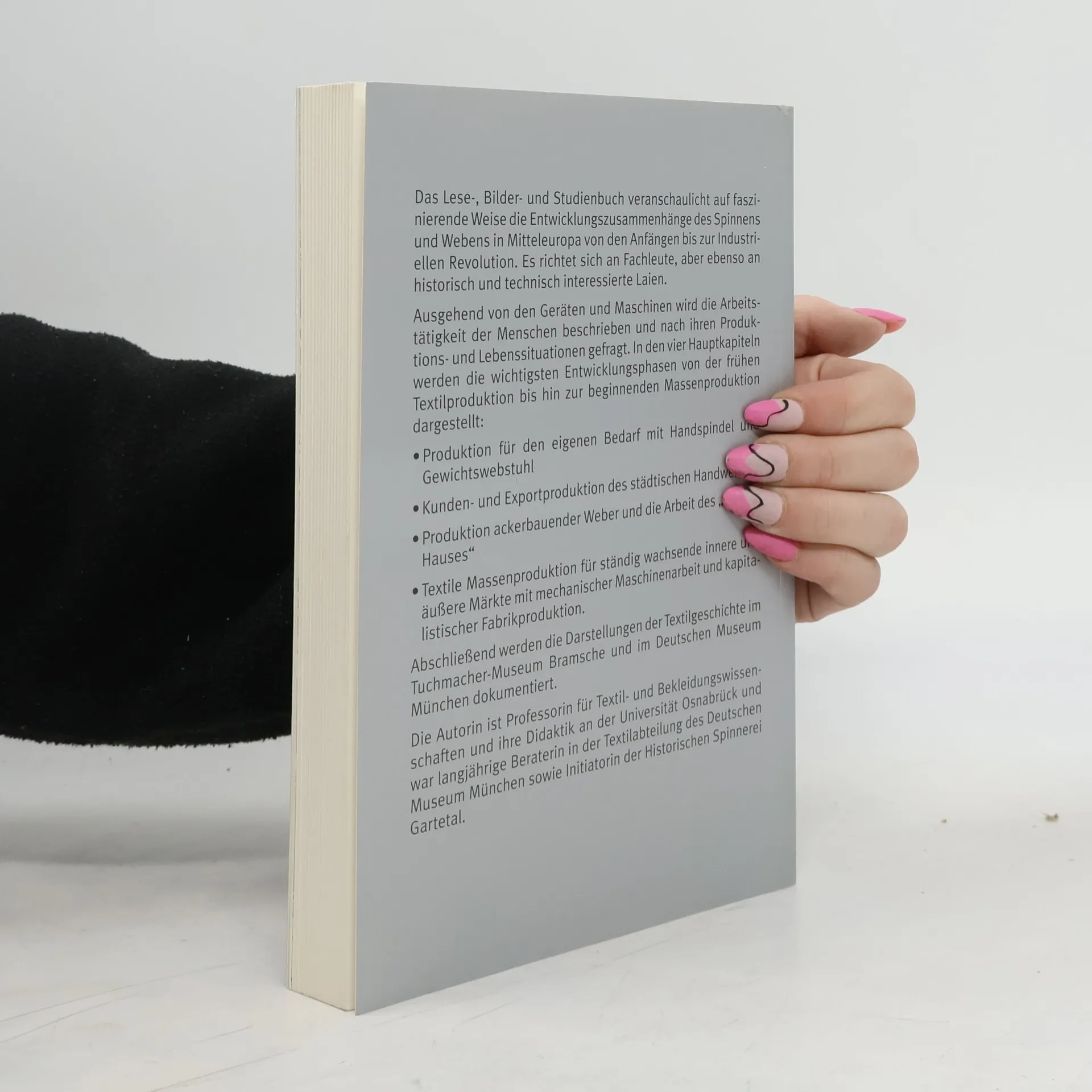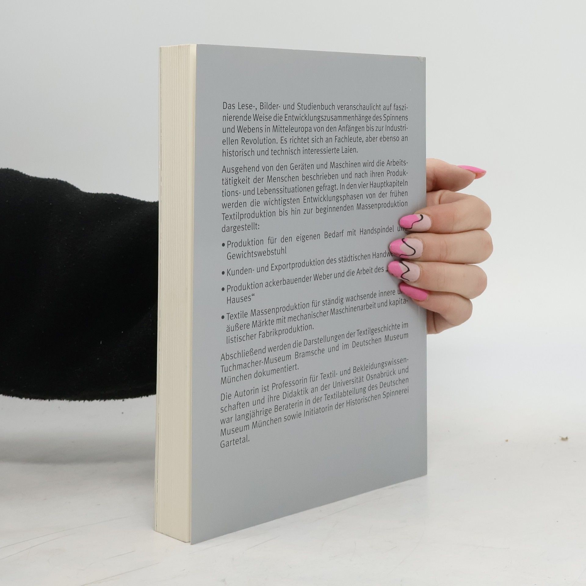 Das Lese-, Bilder- und Studienbuch veranschaulicht auf faszinierende Weise die Entwicklungszusammenhänge des Spinnens und Webens in Mitteleuropa von den Anfängen bis zur industriellen Revolution. Es richtet sich an Fachleute, aber ebenso an historisch und technisch interessierte Laien. Ausgehend von den Geräten und Maschinen wird die Arbeitstätigkeit der Menschen beschrieben und nach ihren Produktions- und Lebenssituationen gefragt. In den vier Hauptkapiteln werden die wichtigsten Entwicklungsphasen von der frühen Textilproduktion bis hin zur beginnenden Massenproduktion dargestellt. Abschließend werden die Darstellungen der Textilgeschichte im Tuchmacher-Museum Bramsche und im Deutschen Museum München dokumentiert.