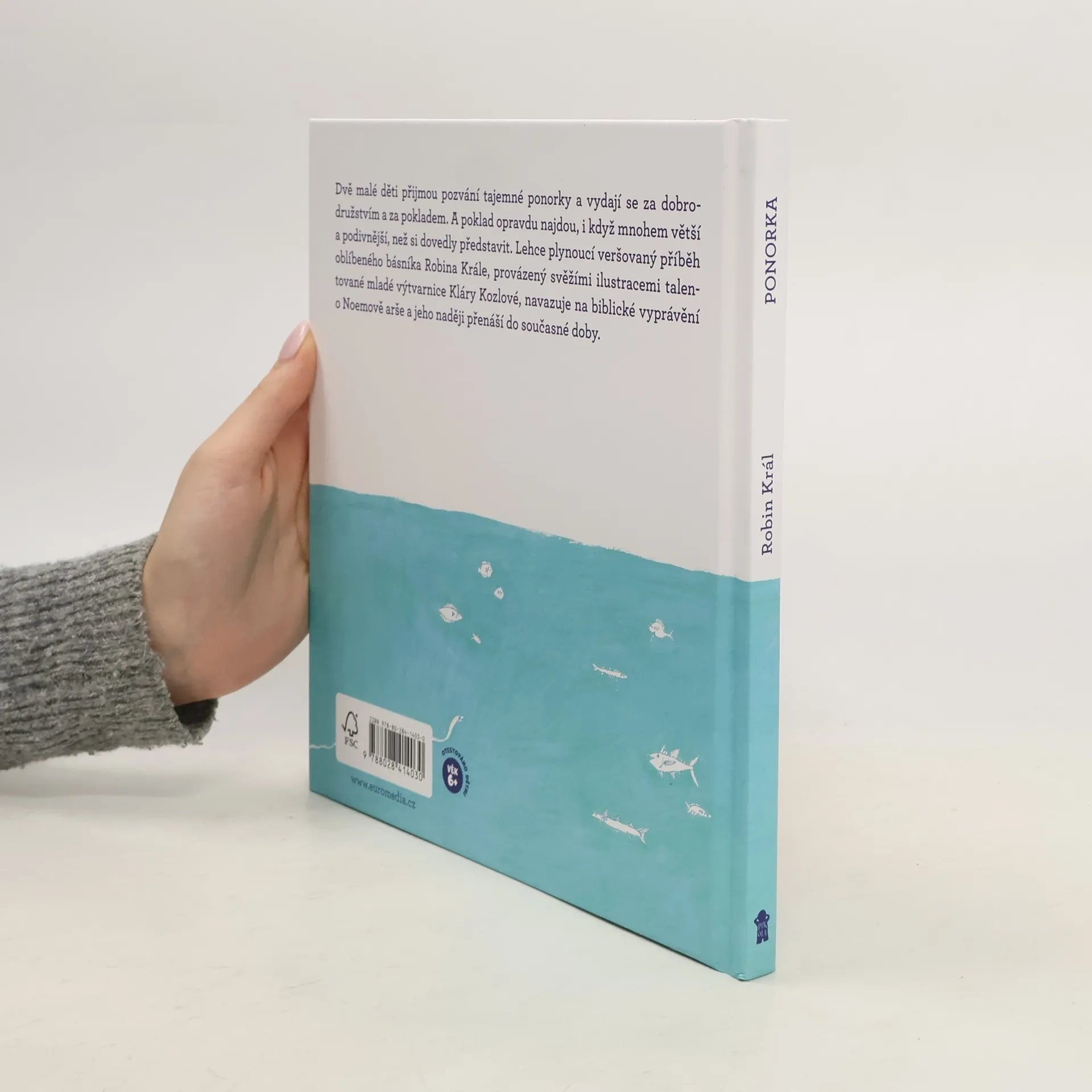 „Adame, zatoč, koráli! Podívej, tenhle krásně rudý a tenhle hnědý! Vem to tudy, abychom nenabourali.“ Dvě malé děti přijmou pozvání tajemné ponorky a vydají se za dobrodružstvím a za pokladem. A poklad také opravdu najdou i když mnohem větší a podivnější, než si dovedly představit. Lehce plynoucí veršovaný příběh oblíbeného básníka Robina Krále provázený svěžími ilustracemi talentované mladé výtvarnice Kláry Kozlové navazuje na biblické vyprávění o Noemově arše a jeho naději přenáší do současné doby.