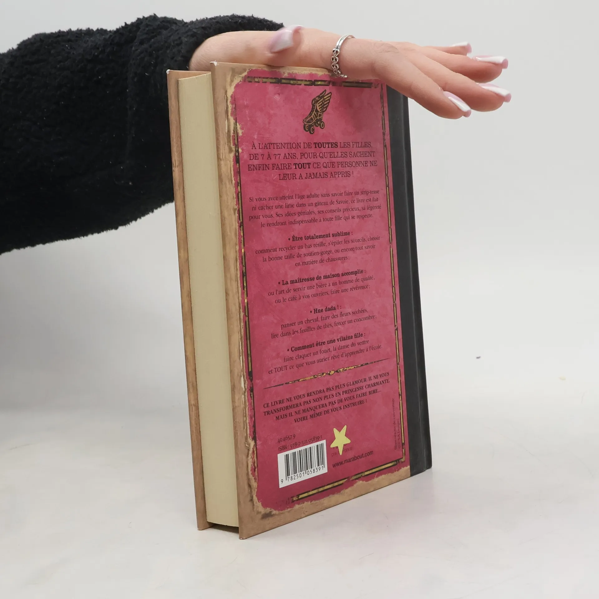 A l'attention de toutes les filles, de 7 à 77 ans, pour qu'elles sachent enfin faire tout ce que personne ne leur a jamais appris ! Si vous avez atteint l'âge adulte sans savoir faire un strip-tease ni cacher une lime dans un gâteau de Savoie, ce livre est fait pour vous. Ses idées géniales, ses conseils précieux, sa légèreté le rendront indispensable à toute fille qui se respecte. Etre totalement sublime : comment recycler un bas résille, s'épiler les sourcils, choisir la bonne taille de soutien-gorge, ou encore tout savoir en matière de chaussures. La maîtresse de maison accomplie : ou l'art de servir une bière à un homme de qualité, ou le café à vos ouvriers, faire une révérence ; Hue dada ! : panser un cheval, faire des fleurs séchées, lire dans les feuilles de thés, forcer un concombre. Comment être une vilaine fille : faire claquer un fouet, la danse du ventre et TOUT ce que vous auriez rêvé d'apprendre à l'école.