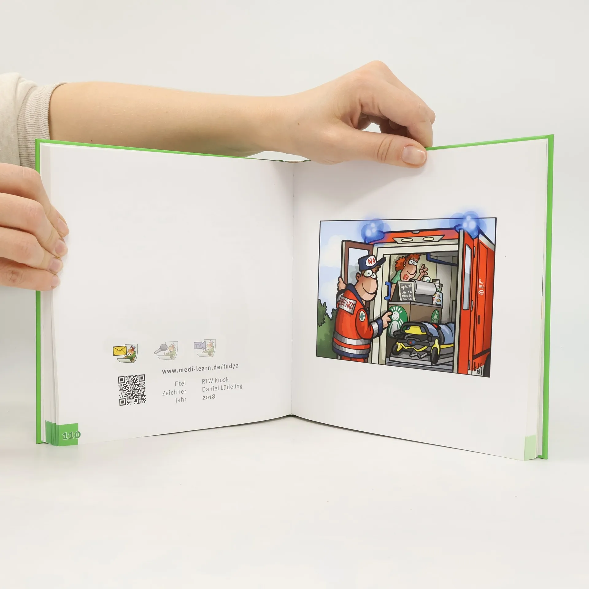 Packungshinweis: Das Cartoonbuch von MEDI-LEARN Cartoons wird zehn Jahre alt und erfreut sich seit jeher großer Beliebtheit bei Lachwütigen und selbsternannten Humorkonsumenten aus dem Blaulichtmilieu. Auch im zehnten Jahr reichen wir zur Dauermedikation eine ausgewählte und hoch konzentrierte Dosis von 100 nicht verschreibungsp ichtigen Cartoons und verweisen auf mögliche leichte Nebenwirkungen wie Zwerchfellreizung, Tränenfluss und unkontrollierte Lachgeräusche.