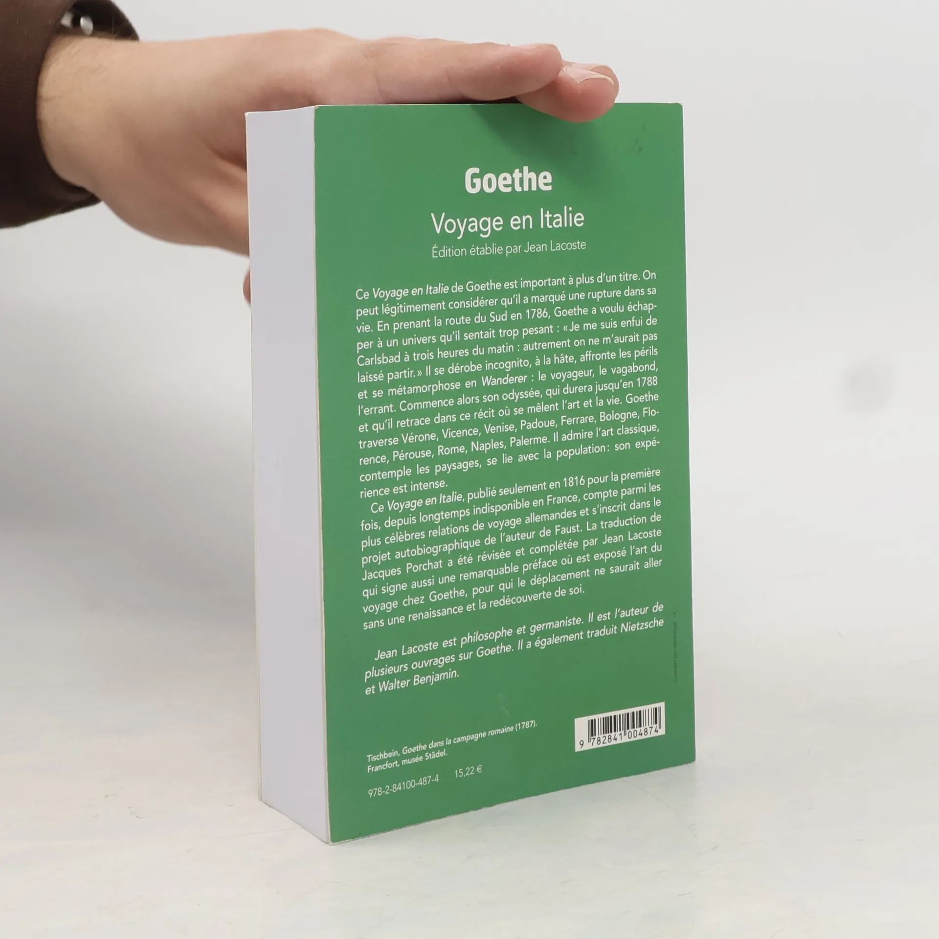 Ce Voyage en Italie de Goethe est important à plus d'un titre. On peut légitimement considérer qu'il a marqué une rupture dans sa vie. En prenant la route du Sud en 1786, Goethe a voulu échapper à un univers qu'il sentait trop pesant : " Je me suis enfui de Carlsbad à trois heures du matin : autrement on ne m'aurait pas laissé partir ". Il se dérobe incognito, à la hâte, affronte les périls et se métamorphose en Wanderer : le voyageur, le vagabond, l'errant. Commence alors son odyssée, qui durera jusqu'en 1788 et qu'il retrace dans ce récit où se mêlent l'art et la vie. Goethe traverse Vérone, Vicence, Venise, Padoue, Ferrare, Bologne, Florence, Pérouse, Rome, Naples, Palerme. Il admire l'art classique, contemple les paysages, se lie avec la population : son expérience est intense. Ce Voyage en Italie, publié seulement en 1816 pour la première fois, depuis longtemps indisponible en France, compte parmi les plus célèbres relations de voyage allemandes et s'inscrit dans le projet autobiographique de l'auteur de Faust. La traduction de Jacques Porchat a été révisée et complétée par Jean Lacoste qui signe aussi une remarquable préface où est exposé l'art du voyage chez Goethe, pour qui le déplacement ne saurait aller sans une renaissance et la redécouverte de soi.