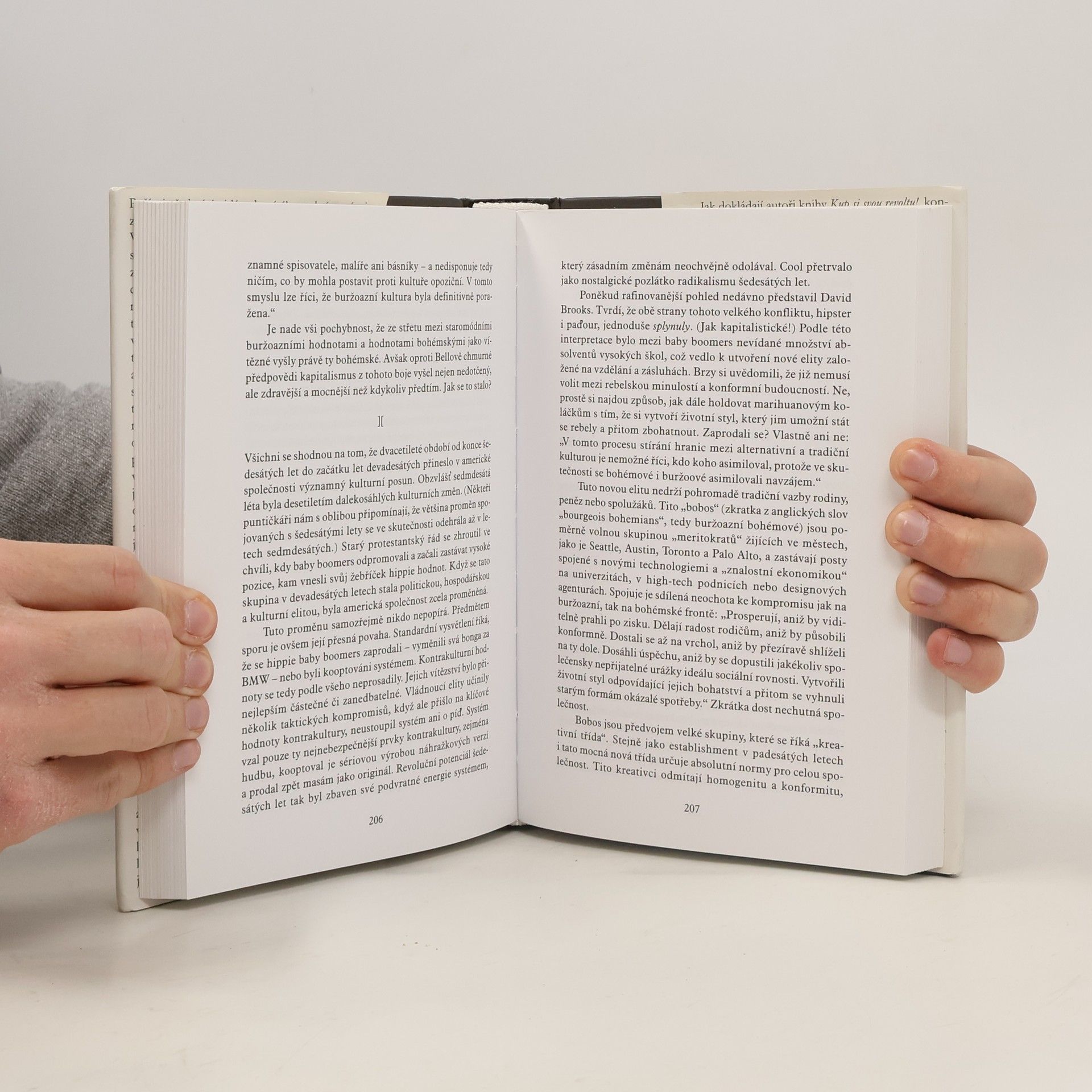 O mýtu kontrakultury aneb Proč revolta proti konzumnímu kapitalismu není pro systém hrozbou, ale naopak hnací silou Od šedesátých let dvacátého století se západní společnosti vyznačují revoltou. Ideje a postoje, které se zrodily v druhé polovině minulého století, ztratily část svého radikálního náboje, avšak zůstávají nám blízké a staly se součástí našeho myšlení. Kritika masové společnosti, odpor vůči konformismu, touha po individualismu a autentičnosti, a odmítání materialistické západní civilizace – to vše je součástí „kontrakulturního“ myšlení. Mnozí se cítí jako rebelové, kteří se vymezují proti systému živenému reklamou a masmédii. Kontrakulturní rebelové po generace vytvářeli „podvratnou“ hudbu, umění a literaturu, avšak systém se s nimi vyrovnává lépe, než by se očekávalo. Alternativy, které vznikly, byly kapitalistickým systémem asimilovány a proměněny na mainstream, což paradoxně posiluje samotný systém. Autoři knihy ukazují, že kontrakulturní revolta ve skutečnosti systém neposiluje, ale paradoxně jej posiluje. Desetiletí trvající kontrakulturní revolta nezměnila nic, protože vychází z chybného pojetí společnosti, které slouží jako hnací síla konzumerismu. Kontrakulturní ideje, které inspirovaly revoluční šedesátá léta, neměly nikdy skutečné napětí s ideologickými požadavky kapitalismu. Vliv kontrakulturního vnímání společnosti se promítá do všech aspektů politického a společenského života, a autoři nabízejí možn