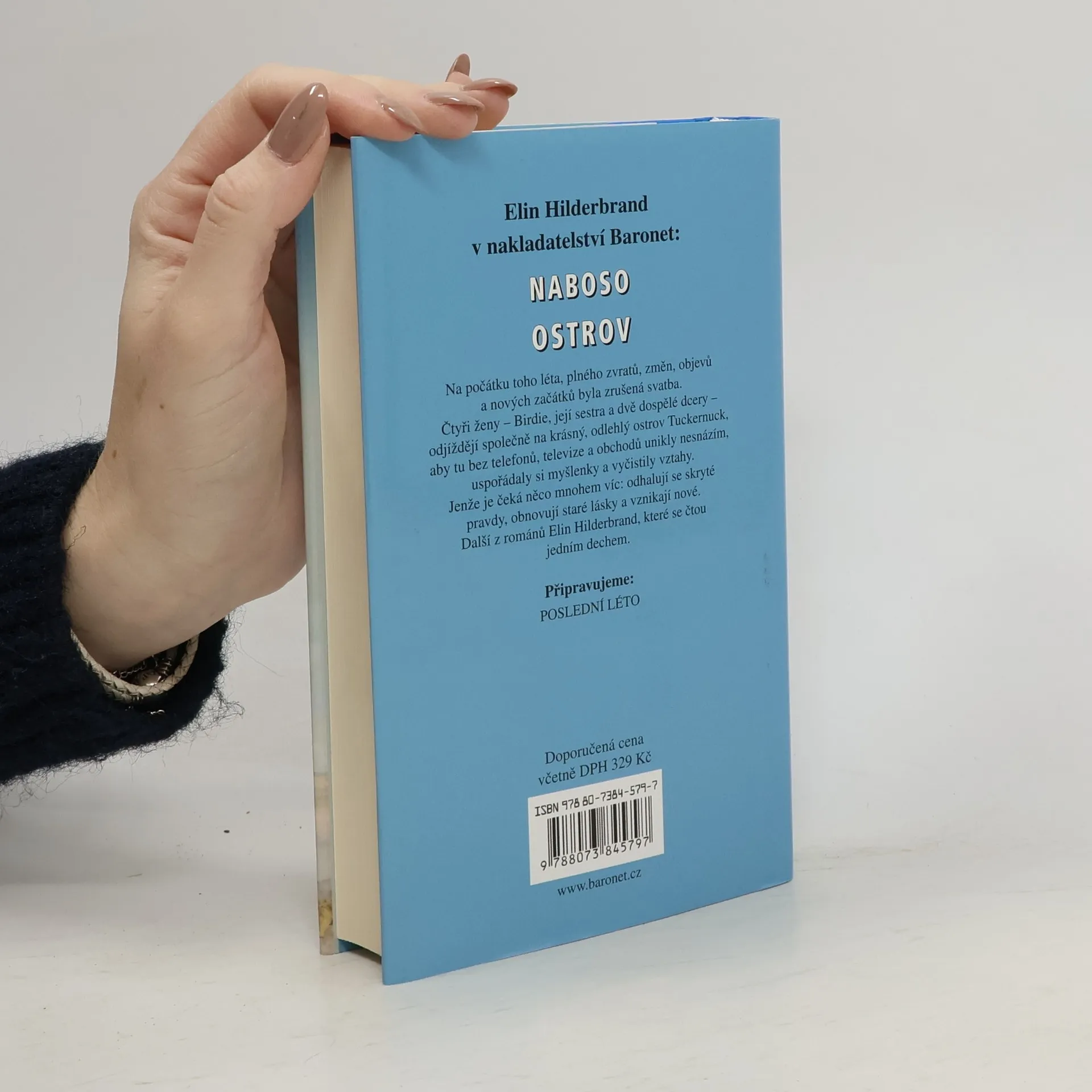 Sestry, milenky a tajemství: tenhle ostrov není dost velký, aby se tam všechny vešly. Birdie Cousinsová se vrhla do příprav na svatbu své dcery Chess, od plujícího tanečního parketu na jezírku v zahradě své vily až po barvy koktejlových ubrousků. Žena, která se pyšní připraveností na každou eventualitu, nemohla nikdy předvídat jediný noční telefonát, jímž jí Chess nenadále oznámila, že zasnoubení se ruší. Je to však teprve první náznak toho, že přichází léto plné zvratů a odhalení. Protože se Chess ocitá na dně zoufalství, vyžádá si Birdie pomoc své mladší dcery Tate a své sestry Indie. Zanedlouho už všechny čtyři míří na krásný, rustikální ostrov Tuckernuck u břehů Nantucketu, kde jejich rodina tráví léto už několik generací. Bez telefonů, bez televize, bez obchodů - místo, kde je nic nerozptyluje a kde mohou uniknout svým problémům. Jenže když se sestry, dcery a jejich tajemství ocitnou na odlehlém ostrově, změní se poklidná dovolená v něco mnohem většího. Odhalují se pravdy, ožívají staré lásky a vznikají nové. Ostrov je plný bolavých srdcí, smíchu a překvapení, díky nimž jsou napínavé romány Elin Hilderbrandové vyhledávanými bestsellery