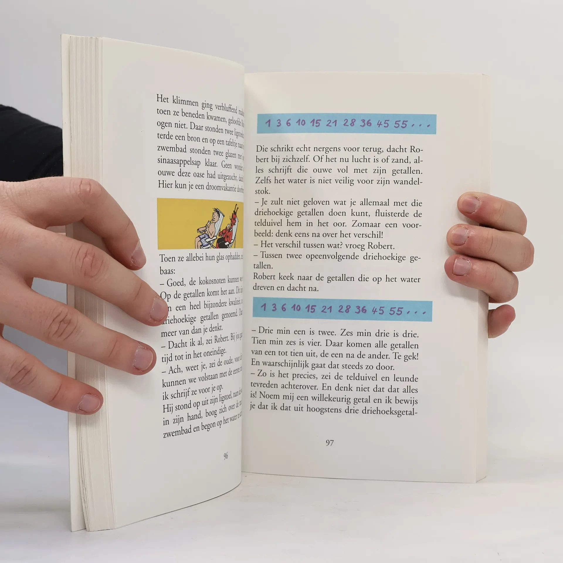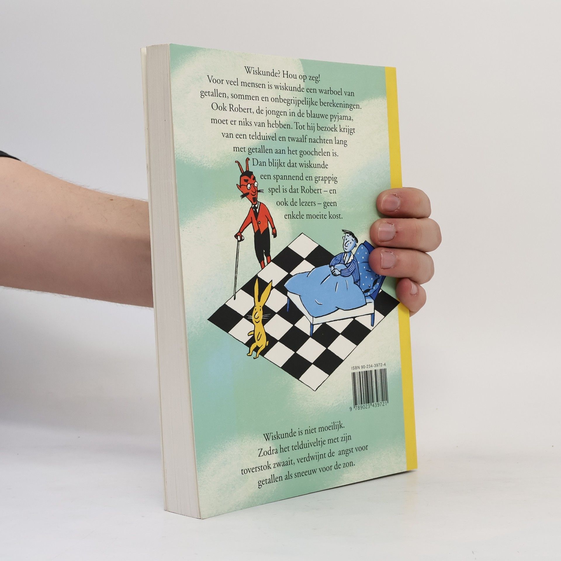 Wiskunde? Hou op zeg! Voor veel mensen is wiskunde een warboel van getallen, sommen en onbegrijpelijke berekeningen. Ook Robert, de jongen in de blauwe pyjama, moet er niks van hebben. Tot hij bezoek krijgt van een telduivel en twaalf nachten lang met getallen aan het goochelen is. Dan blijkt dat wiskune een spannend en grappig spel is dat Robert - en ook de lezers - geen enkele moeite kost. Wiskunde is niet moeilijk. Zodra het telduiveltje met zijn toverstok zwaait, verdwijnt de angst voor getallen als sneeuw voor de zon.