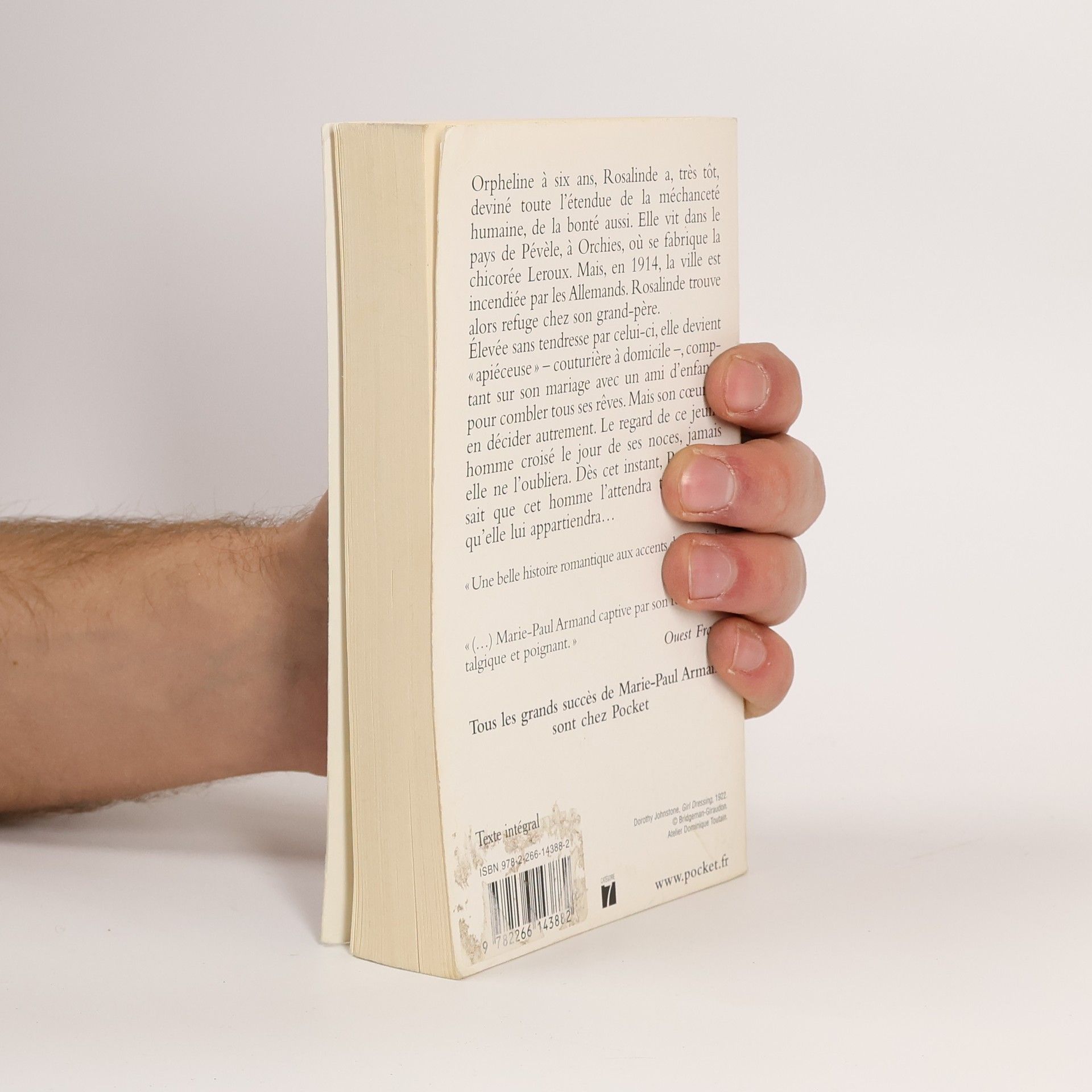 Orpheline à six ans, Rosaline a, très tôt, deviné toute l'étendue de la méchanceté humaine, de la bonté aussi. Fille de cette rude et attachante Flandre française des environs de Douai, son modeste bonheur s'est écroulé en août 1914, quand les Allemands envahirent et brûlèrent son village. Elle trouva alors refuge chez son grand-père. Elevée sans tendresse par celui-ci, elle se retrouve quelques années plus tard rivée à sa machine de couturière à domicile, comptant sur son mariage avec un ami d'enfance pour combler tous ses rêves. Mais son coeur va en décider autrement. Le regard de ce jeune homme croisé le jour de ses noces, jamais elle ne l'oubliera. Dès cet instant, Rosalinde sait que cet homme l'attendra toujours et qu'elle lui appartiendra... «(...) Marie-Paul Armand captive par son roman nostalgique et poignant.» Ouest France Tous les grands succès de Marie-Paul Armand sont chez Pocket.