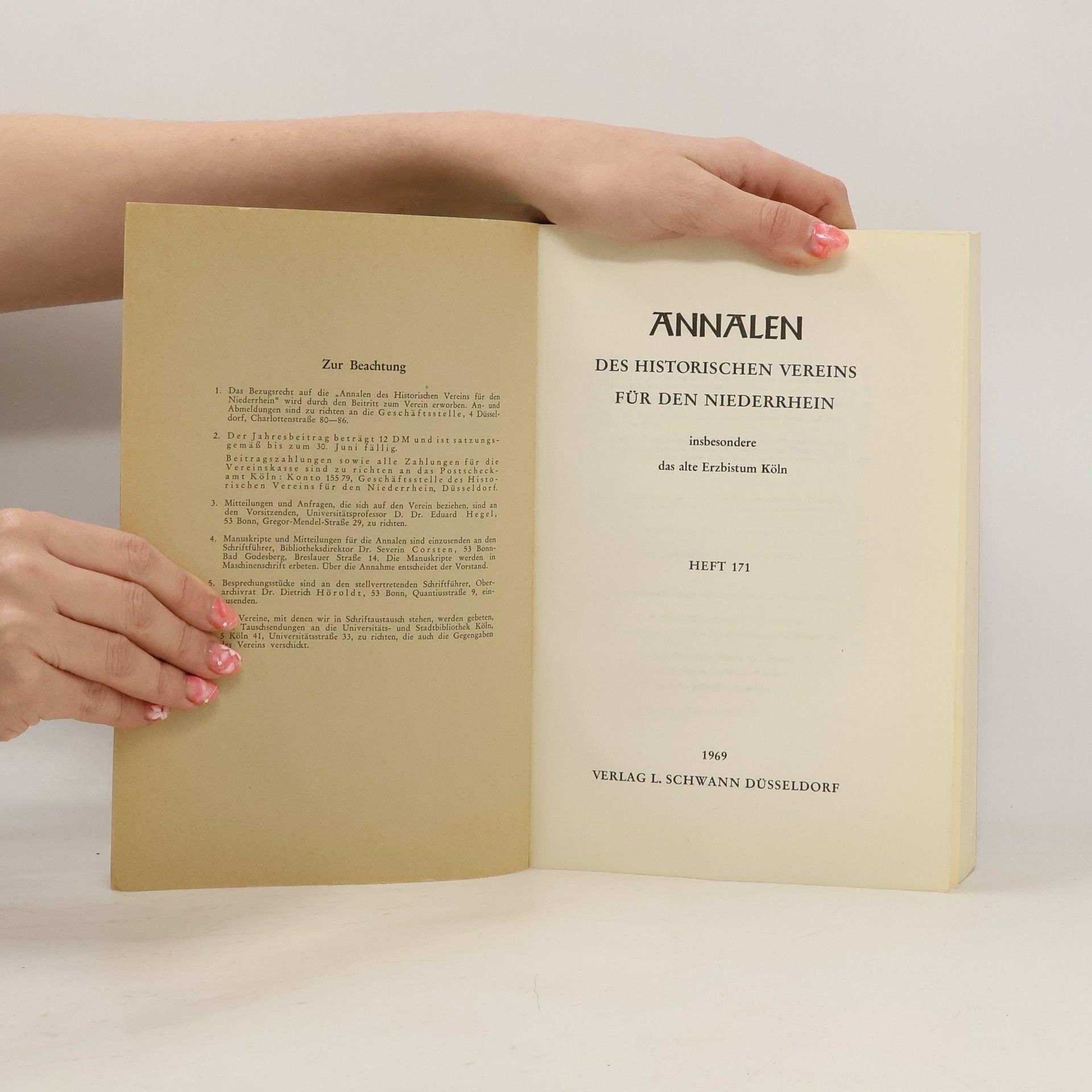 Skladem máme celkem knihy Annalen des Historischen Vereins für den Niederrhein. Heft 171 (1969).