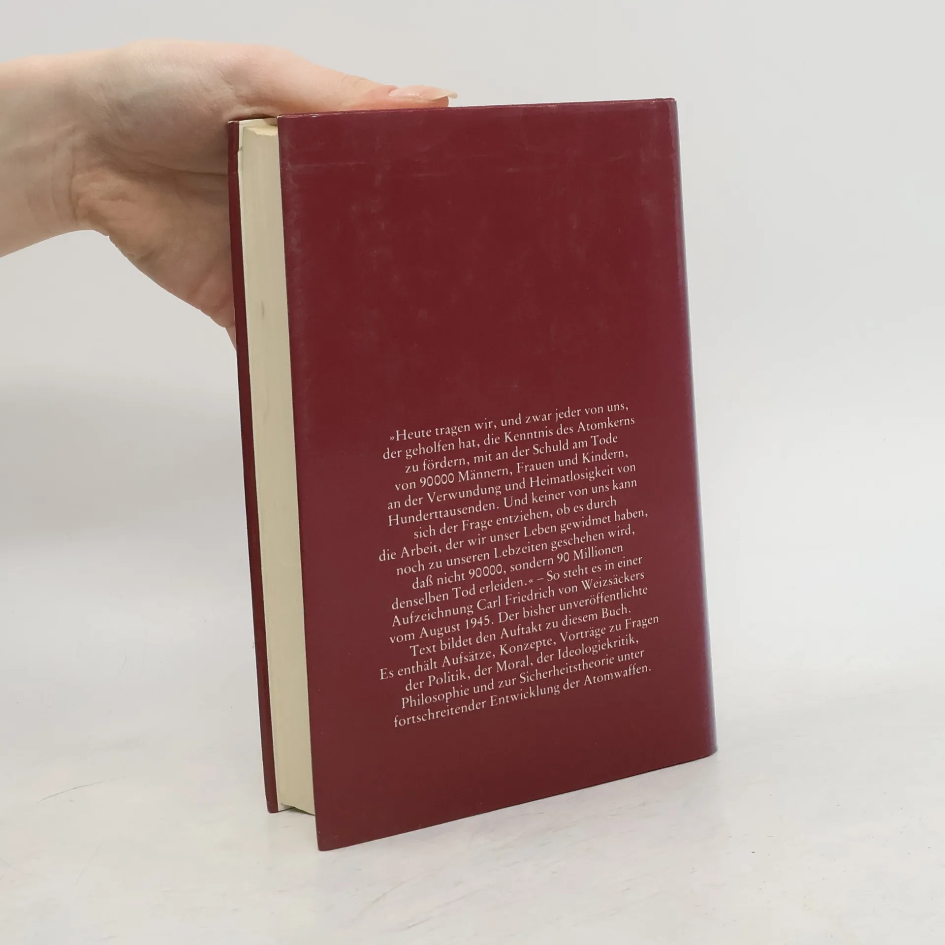 Weizsäcker, Physiker und Philosoph, geht es in diesen poltischen Stellungnahmen um die Weltprobleme der achtziger Jahre. Im Zentrum steht 'Das Leben mit der Bombe', der Umgang mit Kernwaffen; damit zusammenhängend Fragen von Krieg, Kriegsverhütung, Frieden, internationaler Sicherheit, Verantwortung der Wissenschaft