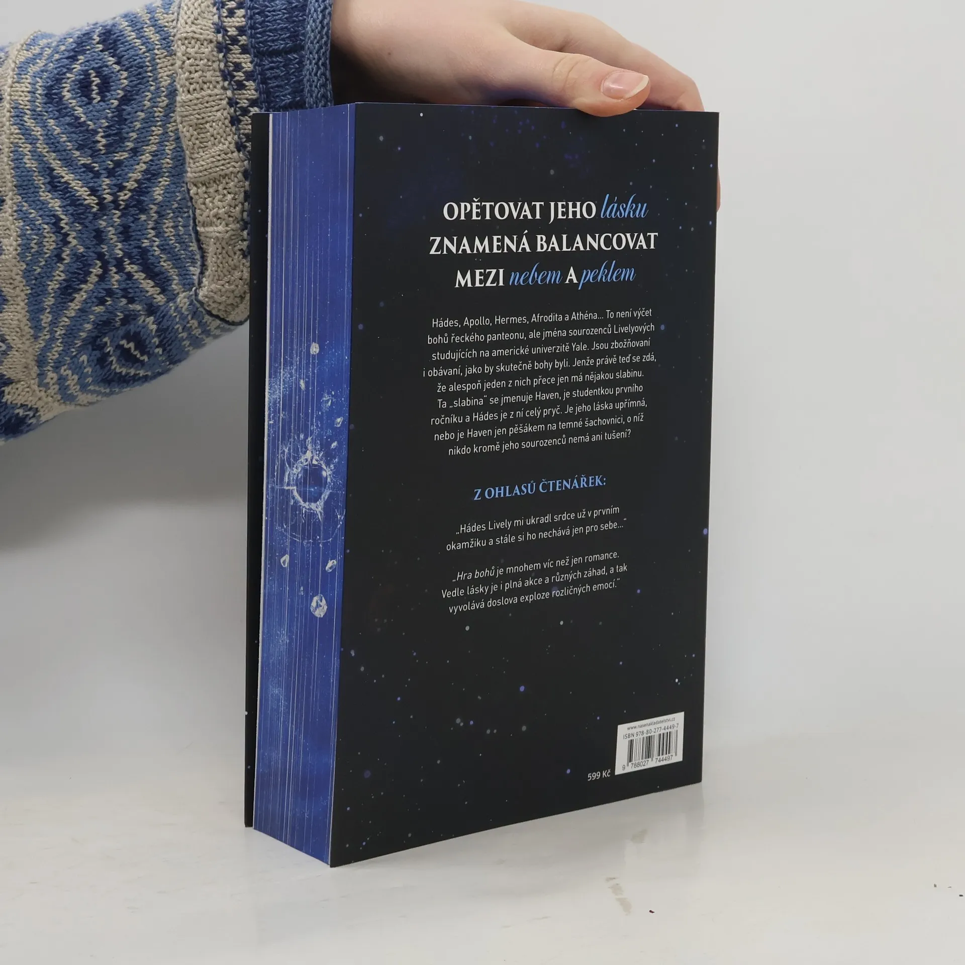 Debutový román začínající italské autorky Hazel Riley vyšel poprvé v Itálii v roce 2023. První román z doposud třídílné série z prostředí americké univerzity zaujme svým neotřelým příběhem. V něm se splétá současný život vysokoškoláků se světem vlivných a bohatých, avšak bezskrupulózních a nelítostných postav, které tahají za nitky v pozadí. Vše je ozvláštněné nádechem řecké mytologie a okořeněné pořádnou dávkou romantiky a žhavých scén. Výborně vystižená psychologie mladých dospělých přispívá k věrohodnosti celku a navzdory rozsáhlosti knihy čtenáře okamžitě vtáhne do příběhu. Hlavní postava, zprvu obyčejná dívka z chudších poměrů, se postupně stává žádoucí hvězdou, o kterou se vede nelítostný boj. Odvěká otázka, kolik jsme ochotni obětovat pro lásku a jak moc dokážeme riskovat pro milovanou osobu, zde opět získává na naléhavosti.