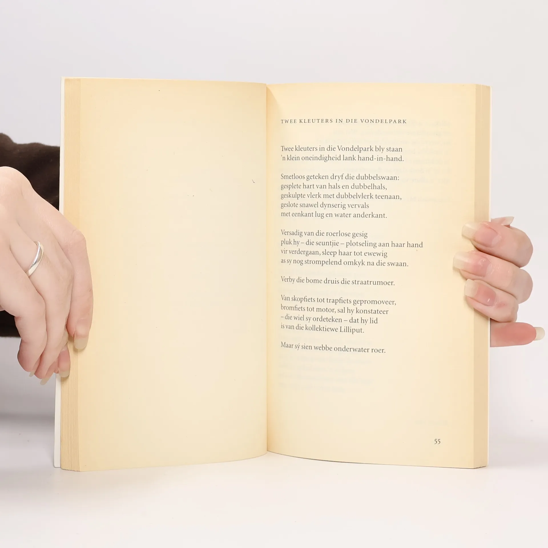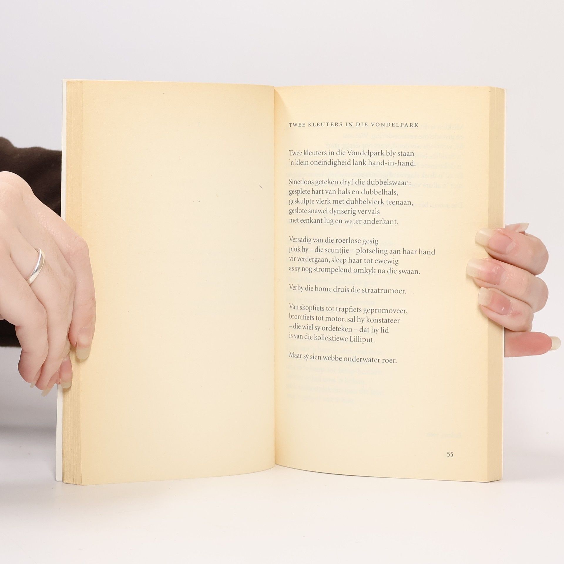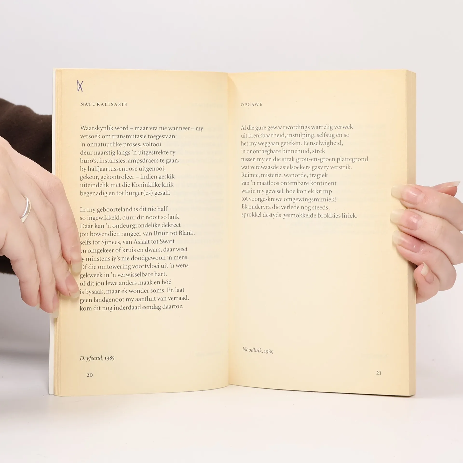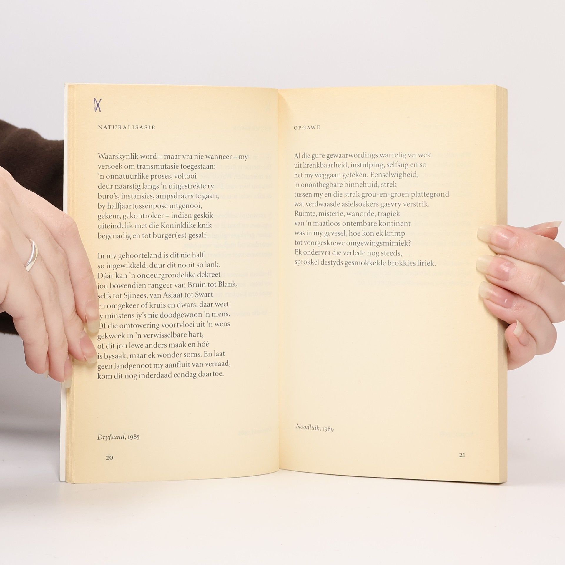 Gedichten in het Afrikaans over ontheemdheid van de Zuid-Afrikaanse, in Amsterdam woonachtige dichteres (1915- ).