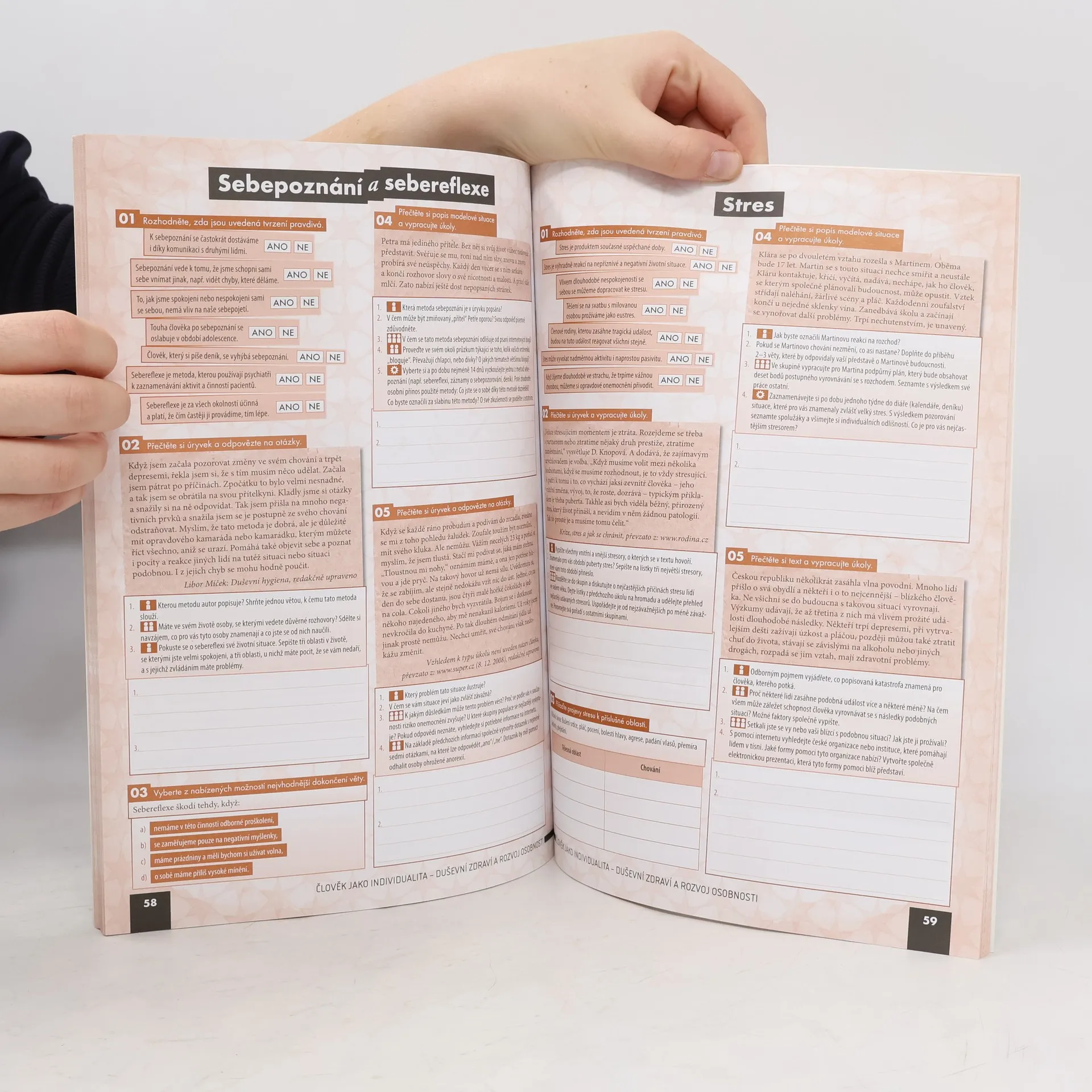 Pracovní sešit je navržen jako jednotný celek s učebnicí, přičemž se předpokládá jejich kombinované využití ve výuce. Ověřuje a prohlubuje znalosti klíčového učiva a spojuje vybrané problematiky s každodenním životem. Cvičení podporují rozvoj dovedností a klíčových kompetencí žáků a splňují požadavky Rámcového vzdělávacího programu pro gymnaziální a střední odborné vzdělávání. Struktura sešitu odpovídá učebnici, obsahuje shodné tematické celky, kapitoly a podkapitoly, přičemž jednotlivá cvičení odkazují na výkladové části učebnice. Každý tematický celek zahrnuje dvoustránkové Opakování, které ověřuje znalost klíčových pojmů a problémů a je zpracováno podle typů cvičení, které odpovídají maturitní zkoušce. Sešit nabízí širokou škálu cvičení, včetně klasických faktografických úloh a aktivit zaměřených na práci s textem, posuzování modelových situací a identifikaci problémů. Zadání kombinují individuální, párovou a skupinovou práci, a zahrnují podněty pro dlouhodobější projekty. Důraz je kladen na spolupráci studentů a jejich sebevyjádření formou diskusí a písemných prací. Většinu cvičení mohou studenti vypracovat přímo do sešitu, což podporuje práci s různými informačními zdroji a kritické zhodnocení jejich spolehlivosti. Grafické zpracování zvyšuje přehlednost a systematičnost textů a formálně odlišuje typy cvičení a formy práce studentů.