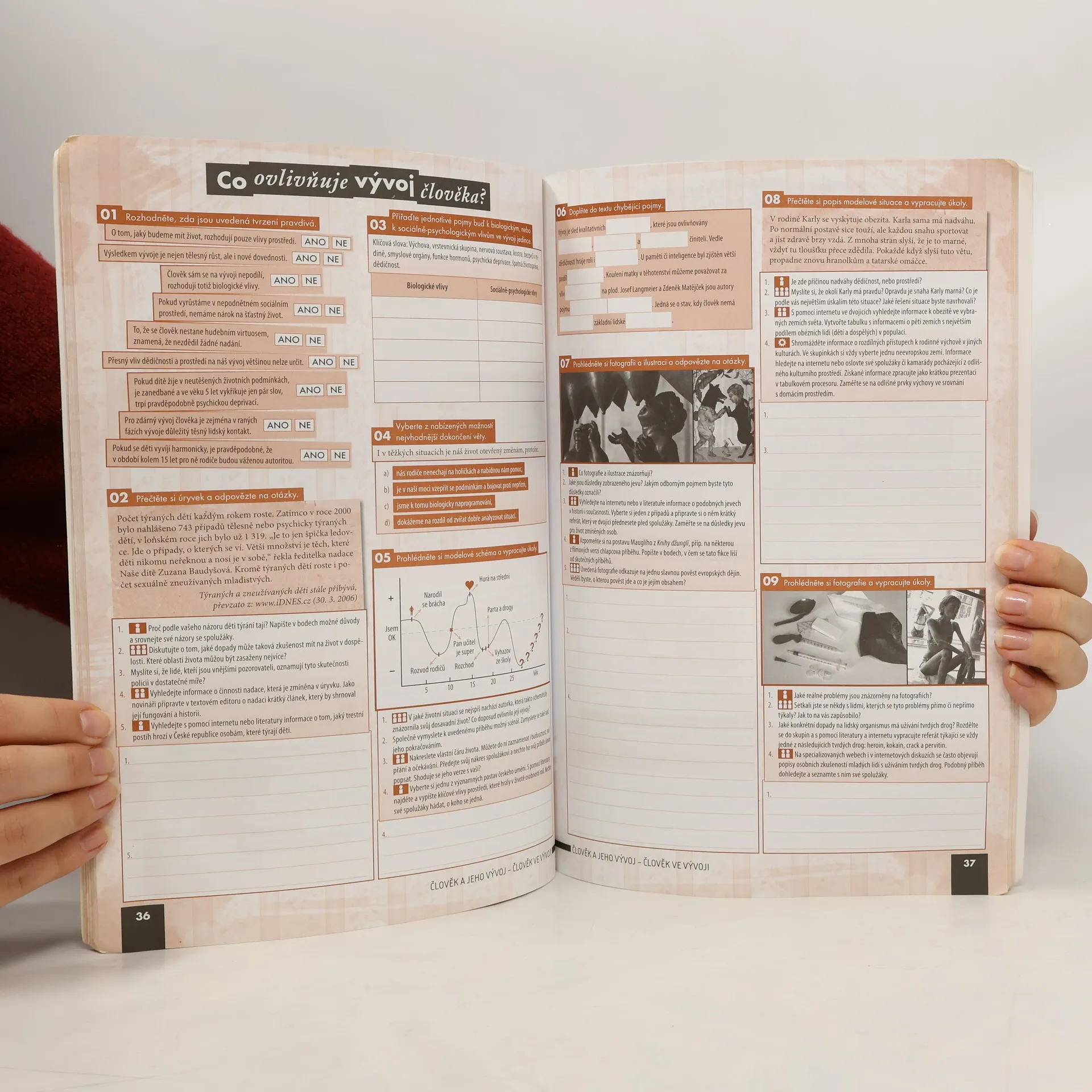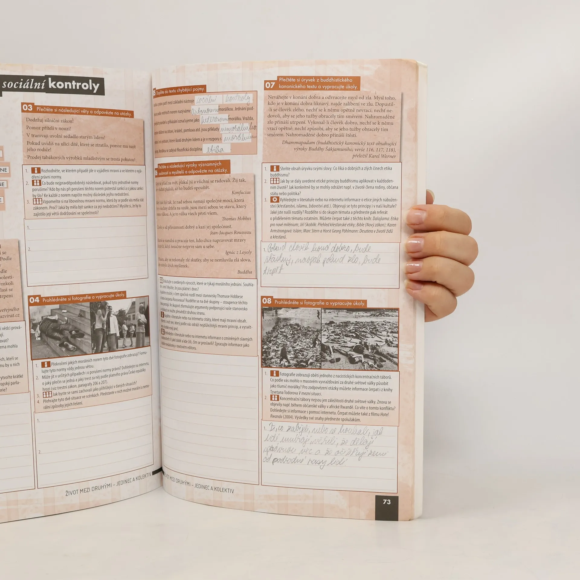 Pracovní sešit je navržen jako jednotný celek s učebnicí, přičemž se předpokládá jejich kombinované využití ve výuce. Ověřuje a prohlubuje znalosti klíčového učiva a spojuje vybrané problematiky s každodenním životem. Cvičení podporují rozvoj dovedností a klíčových kompetencí žáků a splňují požadavky Rámcového vzdělávacího programu pro gymnaziální a střední odborné vzdělávání. Struktura sešitu odpovídá učebnici, obsahuje shodné tematické celky, kapitoly a podkapitoly, přičemž jednotlivá cvičení odkazují na výkladové části učebnice. Každý tematický celek zahrnuje dvoustránkové Opakování, které ověřuje znalost klíčových pojmů a problémů a je zpracováno podle typů cvičení, které odpovídají maturitní zkoušce. Sešit nabízí širokou škálu cvičení, včetně klasických faktografických úloh a aktivit zaměřených na práci s textem, posuzování modelových situací a identifikaci problémů. Zadání kombinují individuální, párovou a skupinovou práci, a zahrnují podněty pro dlouhodobější projekty. Důraz je kladen na spolupráci studentů a jejich sebevyjádření formou diskusí a písemných prací. Většinu cvičení mohou studenti vypracovat přímo do sešitu, což podporuje práci s různými informačními zdroji a kritické zhodnocení jejich spolehlivosti. Grafické zpracování zvyšuje přehlednost a systematičnost textů a formálně odlišuje typy cvičení a formy práce studentů.