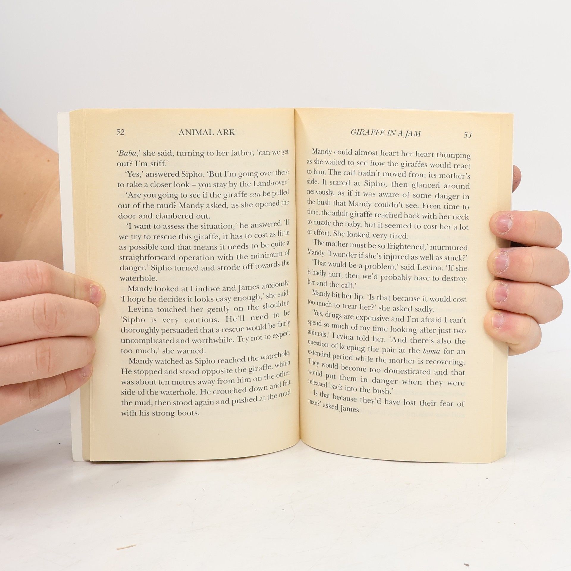A family trip to South Africa means an amazing adventure for Mandy and James. They can't wait to go on safari!Mandy, James and their friend Levina are watching giraffes at a waterhole when Mandy spots one in trouble. Its legs are splayed to drink and it doesn't seem able to right itself. If the giraffe can't get back on its feet, it will become prey to prowling lions, but Levina says they must let nature take its course. Then Mandy notices the giraffe's calf. Surely they can't just leave a mother and her baby to die?