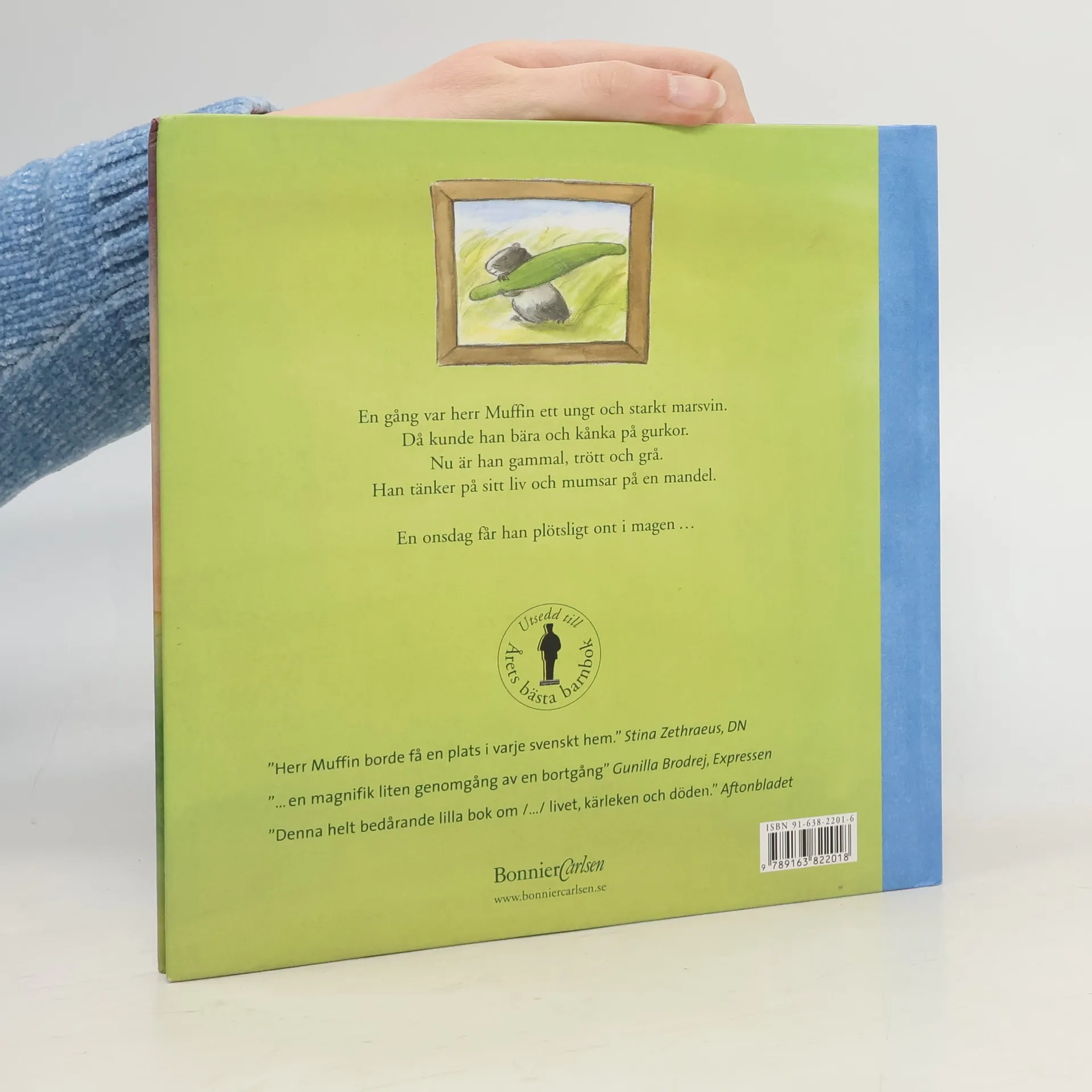 En gång var herr Muffin ett ungt och starkt marsvin. Då kunde han bära och kånka på gurkor. Nu är han gammal, trött och grå. Han tänker på sitt liv och mumsar på en mandel. En onsdag får han plötsligt ont i magen...