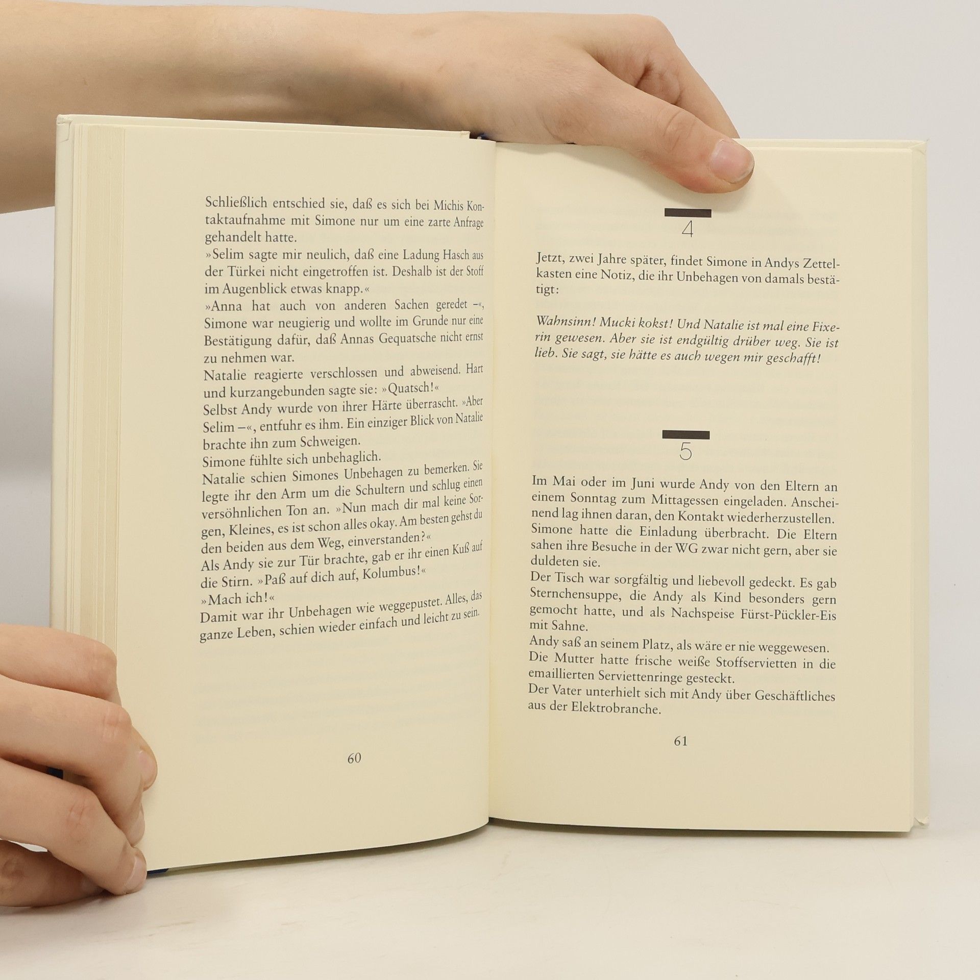 Wer an der Nadel hängt und keinen neuen Stoff bekommt, den überfällt der Zustand des Cold Turkey: Gänsehaut, Schüttelfrost, Durchfall, Krämpfe. Auch Andy rutscht die Leiter abwärts.