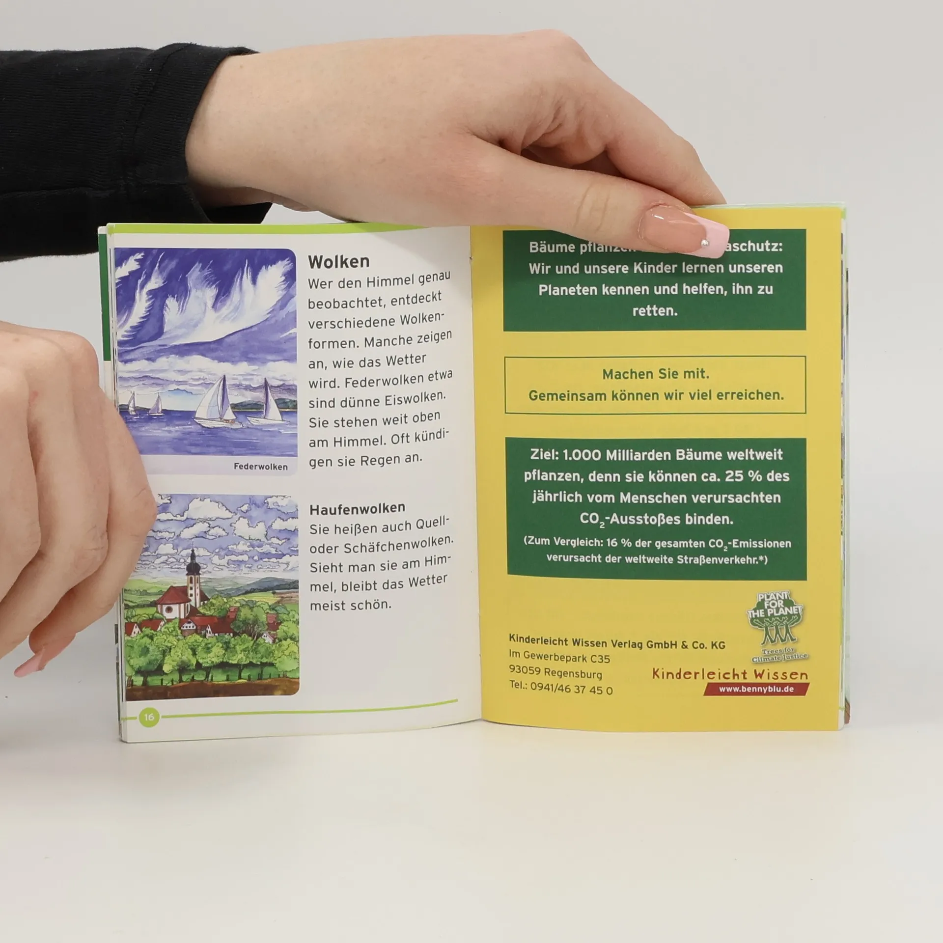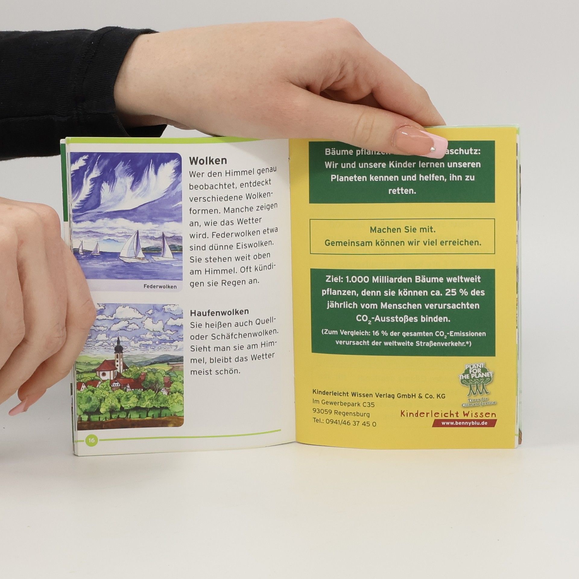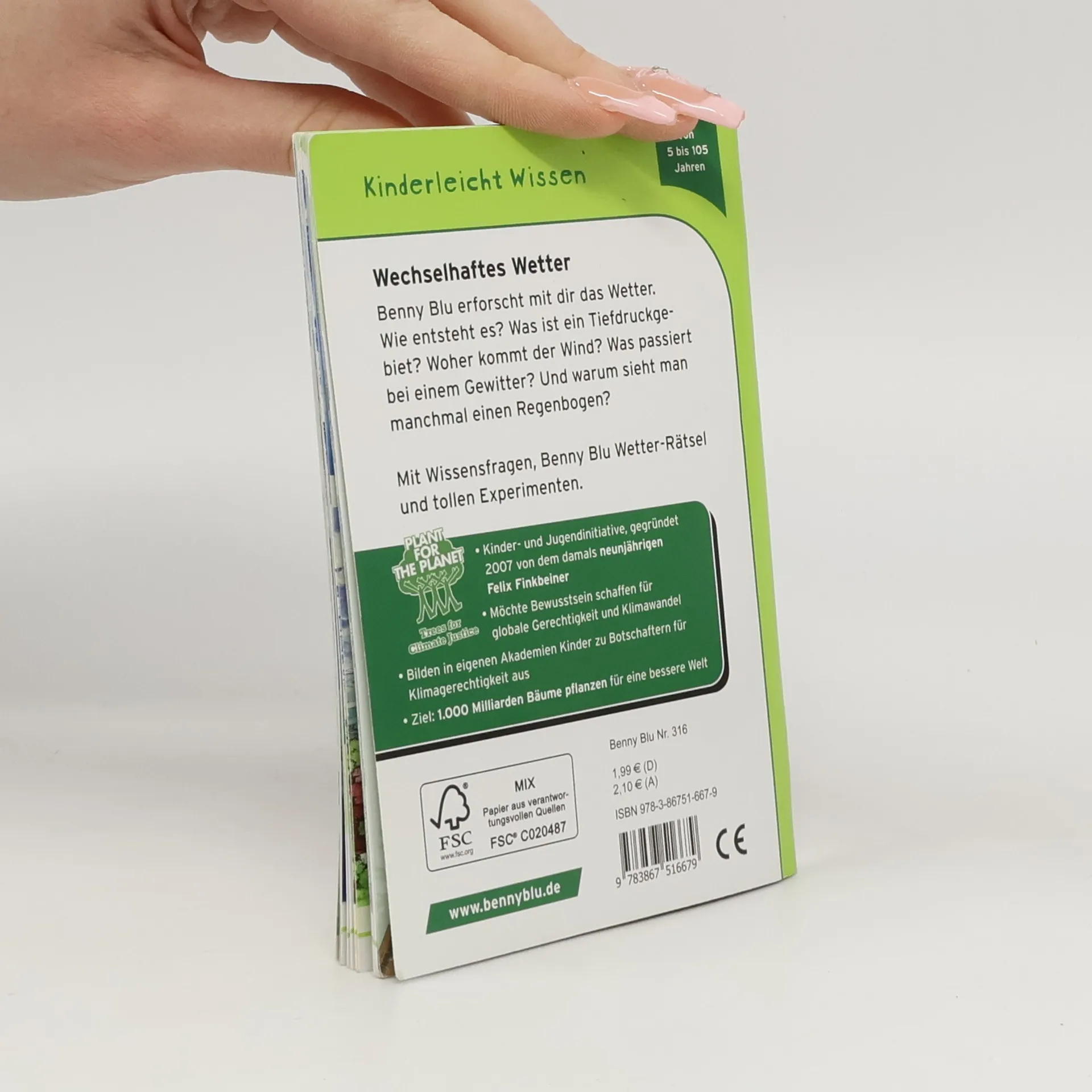 Kinder retten die Welt - Bäume gegen die Klimakrise 2007 gründete der damals neunfährige Felix Finkbeiner die Kinder-und Jugendinitiative Plant-for-the-Planet, deren Ziel es ist, weltweit 1.000 Milliaren Bäume zu pflanzen. In Zusammenarbeit mit Plant-for-the-Planet und promintem Buchpaten haben wir unser Benny Blu Lernbuch „Wetter“ als Titel der neuen Reihe „Unser Planet“ NEU aufgelegt, um unsere Welt ein kleines Stückchen besser zu machen. Wir gehen Hand in Hand für unseren Planeten! Prominenter Buchpate: Stefan Gödde Format DIN A6, 32 Seiten, Softcover geheftet, 4/4 farbig