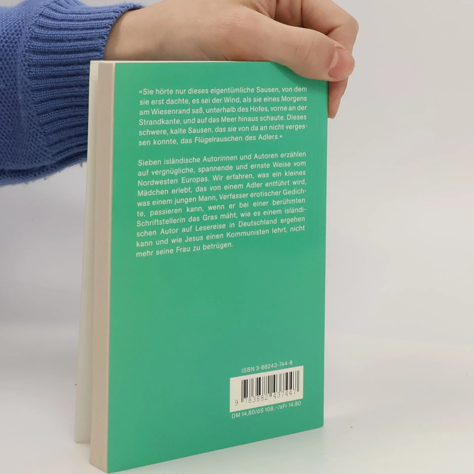 Sieben isländische Autorinnen und Autoren erzählen auf vergnügliche, spannende und ernste Weise von ihrem Land. Der Leser erfährt, was ein kleines Mädchen erlebt, das von einem Adler entführt wird, was einem jungen Mann, Verfasser erotischer Gedichte, passieren kann, wenn er bei einer berühmten Schriftstellerin den Rasen mäht, wie es einem isländischen Autor auf Lesereise in Deutschland ergeht und wie Jesus einen Kommunisten lehrt, nicht mehr seine Frau zu betrügen.Der Band enthält Erzählungen von Andri Snær Magnason, Álfrún Gunnlaugsdóttir, Fríða Á. Sigurðardóttir, Guðbergur Bergsson, Ólafur Gunnarsson, Vigdís Grímsdóttir und Þórarinn Eldjárn.