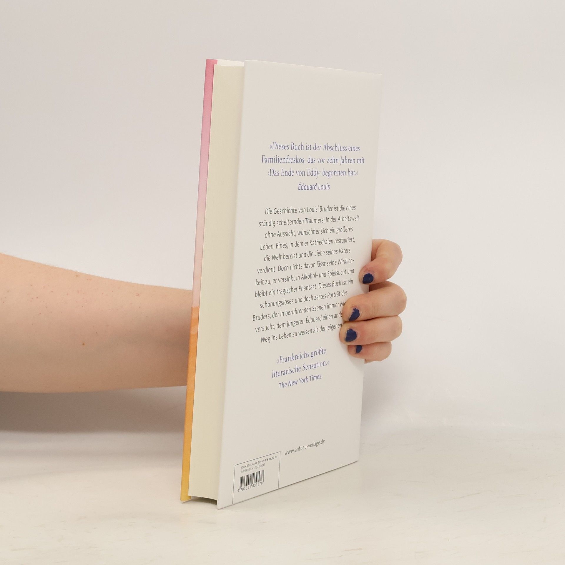 Frankreichs größte literarische Sensation. In seinem neuen großen Roman erzählt Édouard Louis mit der ihm so eigenen Beobachtungsschärfe erstmals die aufwühlende Geschichte seines Bruders. Es ist die Geschichte eines ständig scheiternden Träumers: Früh in der Arbeitswelt in eine Rolle ohne Ausweg oder Aufstiegschancen gedrängt, wünscht er sich ein größeres Leben. Eines, in dem er Kathedralen restauriert, die Welt bereist und die Liebe seines Vaters erhält. Doch nichts davon lässt seine soziale Wirklichkeit zu, er versinkt in Alkohol- und Spielsucht. Er bleibt ein tragischer Phantast, der mit achtunddreißig Jahren tot in seiner kleinen Wohnung aufgefunden wird. Dieses Buch ist die Geschichte seines Zusammenbruchs, und zugleich ein zärtliches Porträt des Bruders, der in berührenden Szenen immer wieder versucht, dem jüngeren Édouard einen anderen Weg ins Leben zu weisen als den eigenen. »Es hat eine enorme aufpeitschende Kraft, wie Édouard Louis sein Leben reflektiert.« Edgar Selge