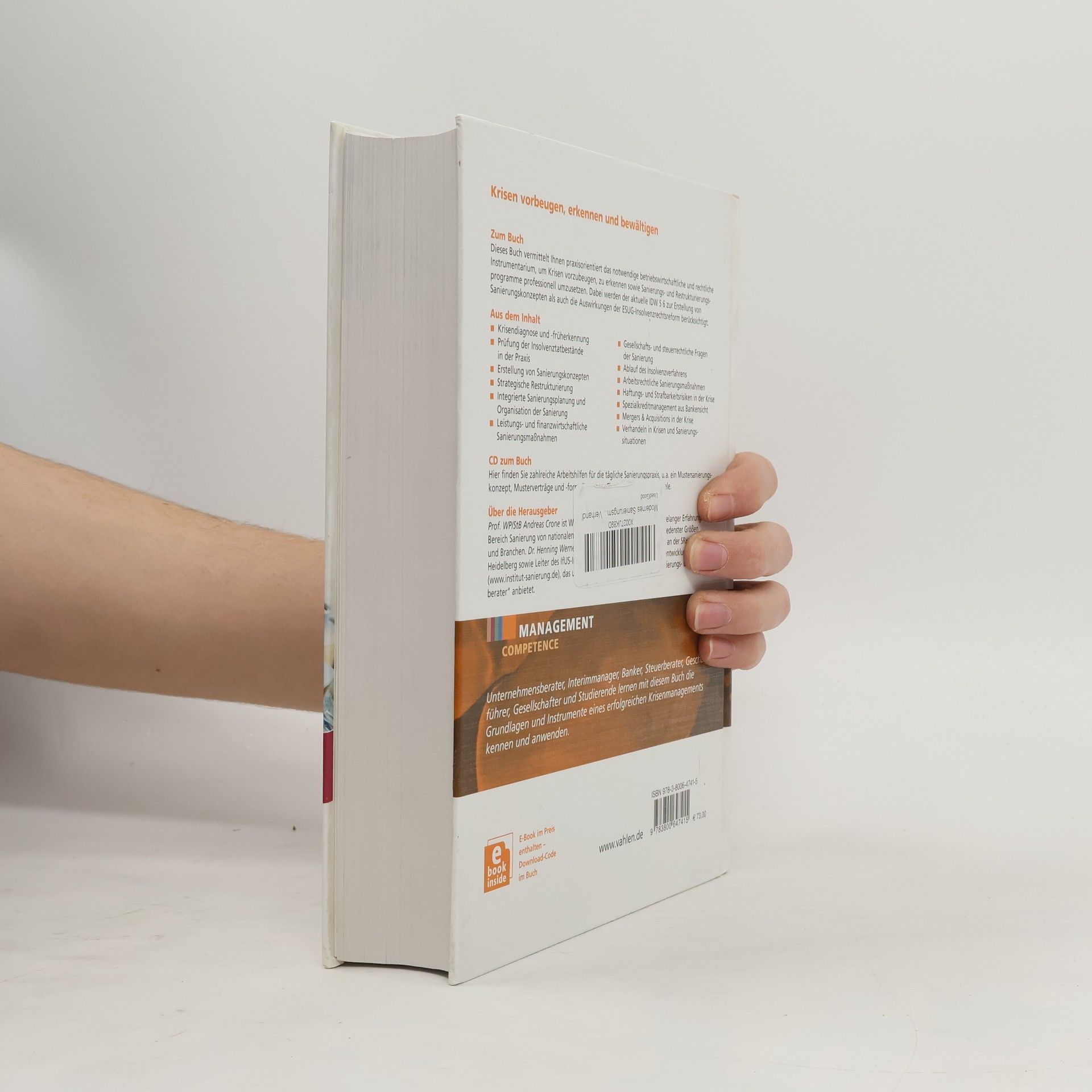 Dieses Buch vermittelt praxisorientiert die betriebswirtschaftlichen und rechtlichen Instrumente zur Krisenprävention, -erkennung und zur professionellen Umsetzung von Sanierungs- und Restrukturierungsprogrammen. Es berücksichtigt den aktuellen IDW S 6 zur Erstellung von Sanierungskonzepten sowie die Auswirkungen der ESUG-Insolvenzrechtsreform. Die Inhalte umfassen Krisendiagnose und -früherkennung, die Prüfung der Insolvenztatbestände in der Praxis, die Erstellung von Sanierungskonzepten, strategische Restrukturierung, integrierte Sanierungsplanung und die Organisation der Sanierung. Zudem werden leistungs- und finanzwirtschaftliche Sanierungsmaßnahmen, gesellschafts- und steuerrechtliche Fragen, der Ablauf des Insolvenzverfahrens, arbeitsrechtliche Sanierungsmaßnahmen sowie Haftungs- und Strafbarkeitsrisiken behandelt. Ein spezielles Augenmerk liegt auf dem Spezialkreditmanagement aus Bankensicht, Mergers & Acquisitions in Krisensituationen und dem Verhandeln in Krisen. Zusätzlich bietet die CD zahlreiche Arbeitshilfen wie Mustersanierungskonzepte, Musterverträge, Checklisten und Fallbeispiele. Die Herausgeber bringen umfassende Erfahrung im Bereich der Unternehmenssanierung mit. Unternehmensberater, Interimmanager, Banker, Steuerberater, Geschäftsführer, Gesellschafter und Studierende können mit diesem Buch die Grundlagen und Instrumente eines erfolgreichen Krisenmanagements erlernen und anwenden.