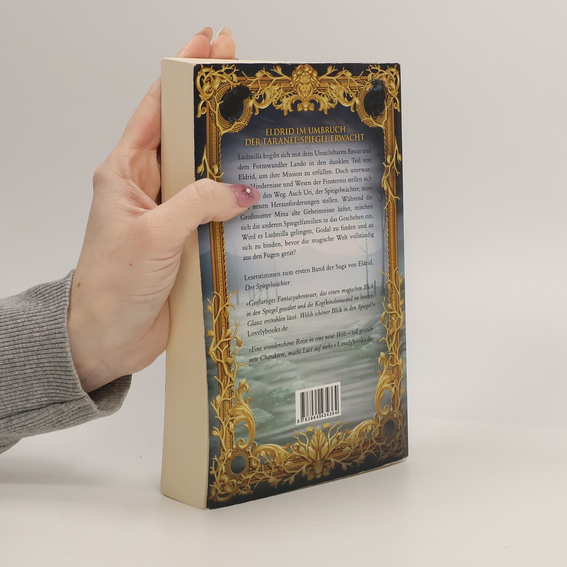 Eldrid im Umbruch Der Taranee-Spiegel erwachtLudmilla begibt sich mit dem Unsichtbaren Eneas und dem Formwandler Lando in den dunklen Teil von Eldrid, um ihre Mission zu erfüllen. Doch unerwartete Hindernisse und Wesen der Finsternis stellen sich ihnen in den Weg. Auch Uri, der Spiegelwächter, muss sich neuen Herausforderungen stellen. Während die Großmutter Mina alte Geheimnisse lüftet, mischen sich die anderen Spiegelfamilien in das Geschehen ein. Wird es Ludmilla gelingen, Godal zu finden und an sich zu binden, bevor die magische Welt vollständig aus den Fugen gerät?