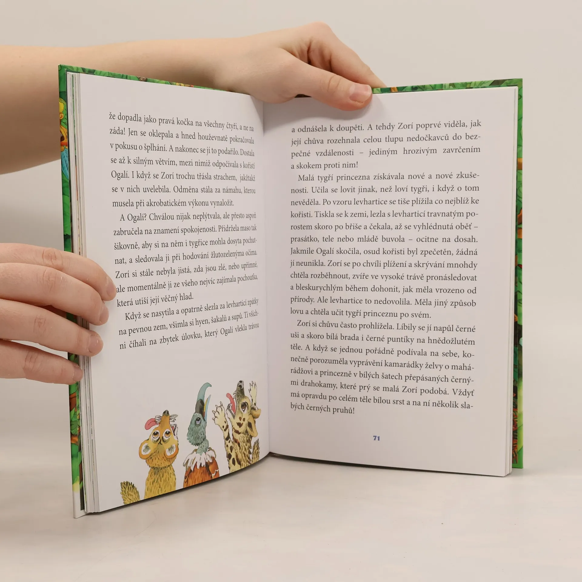 Malá Zorí se narodila v džungli, a jakmile se rozkoukala, začala ji maminka učit všemu, co musí umět každá správná tygřice, aby se jí v pralese pokojně žilo. Ale jednoho dne bezstarostný čas tygřímu kotěti skončí -- matku i s bratříčkem chytí lidé a odvlečou je pryč. Co bude dál s osamocenou Zorí? Kdo ji teď ochrání? Džungle není bezpečné místo pro opuštěná mláďata, zvlášť pokud patří k ohroženému druhu zvířat. A Zorí je opravdu vzácná tygří princezna!