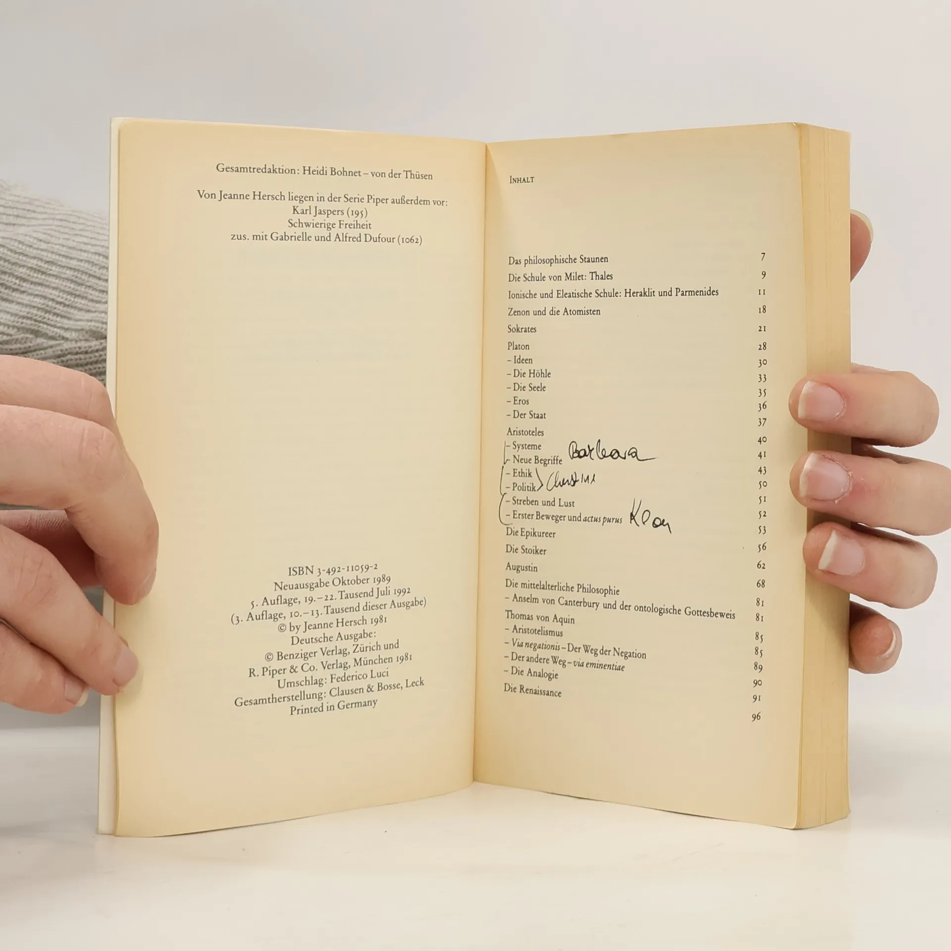 Das philosophische Staunen, Jeanne Hersch