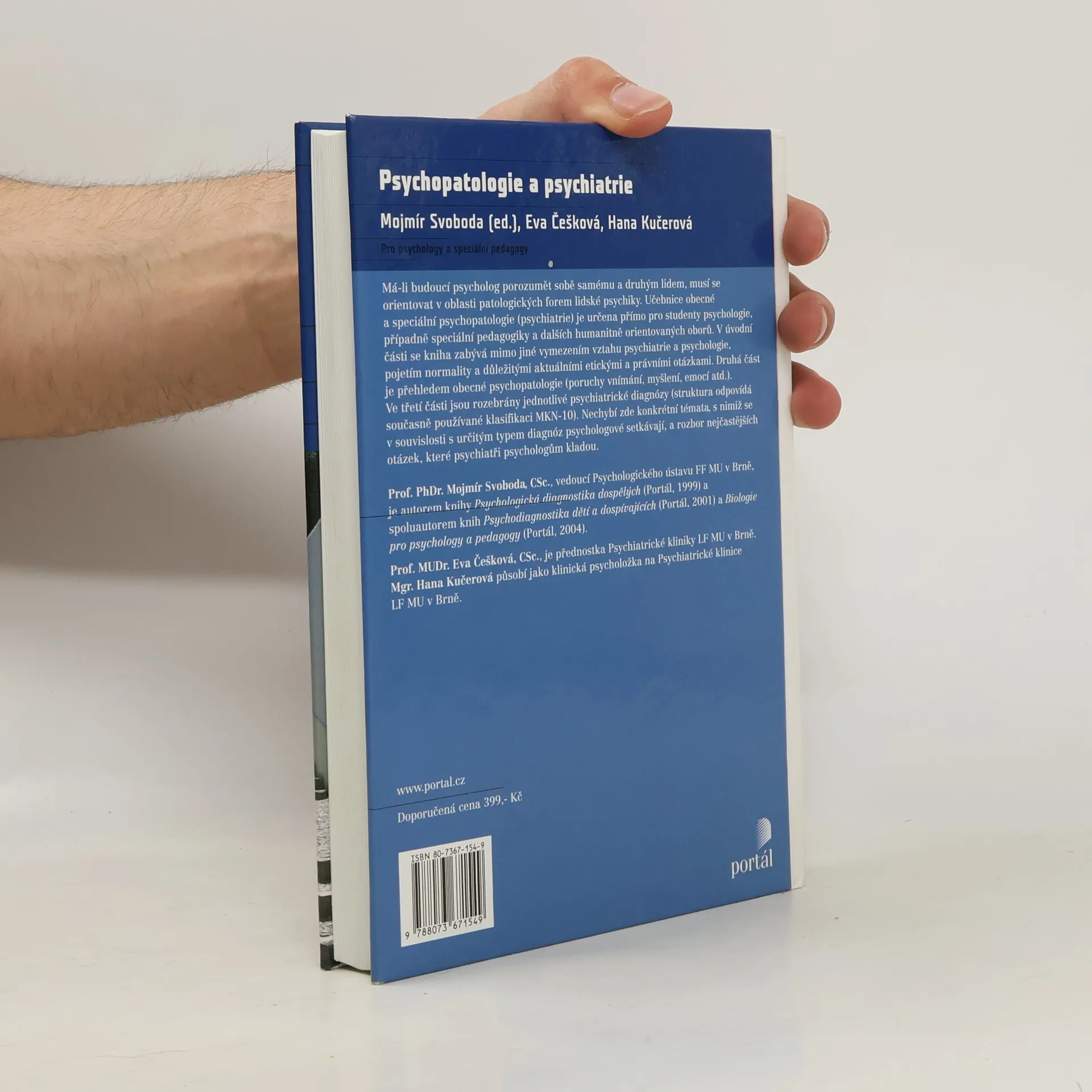 Má-li budoucí psycholog porozumět sobě samému a druhým lidem, musí se orientovat v oblasti patologických forem lidské psychiky. Učebnice obecné a speciální psychopatologie (psychiatrie) je určena přímo pro studenty psychologie, případně speciální pedagogiky a dalších humanitně orientovaných oborů. V úvodní části se kniha zabývá mimo jiné vymezením vztahu psychiatrie a psychologie, pojetím normality a důležitými aktuálními etickými a právními otázkami. Druhá část je přehledem obecné psychopatologie (poruchy vnímání, myšlení, emocí atd.). Ve třetí části jsou rozebrány jednotlivé psychiatrické diagnózy (struktura odpovídá současně používané klasifikaci MKN-10). Nechybí zde konkrétní témata, s nimiž se v souvislosti s určitým typem diagnóz psychologové setkávají, a rozbor nejčastějších otázek, které psychiatři psychologům kladou.
