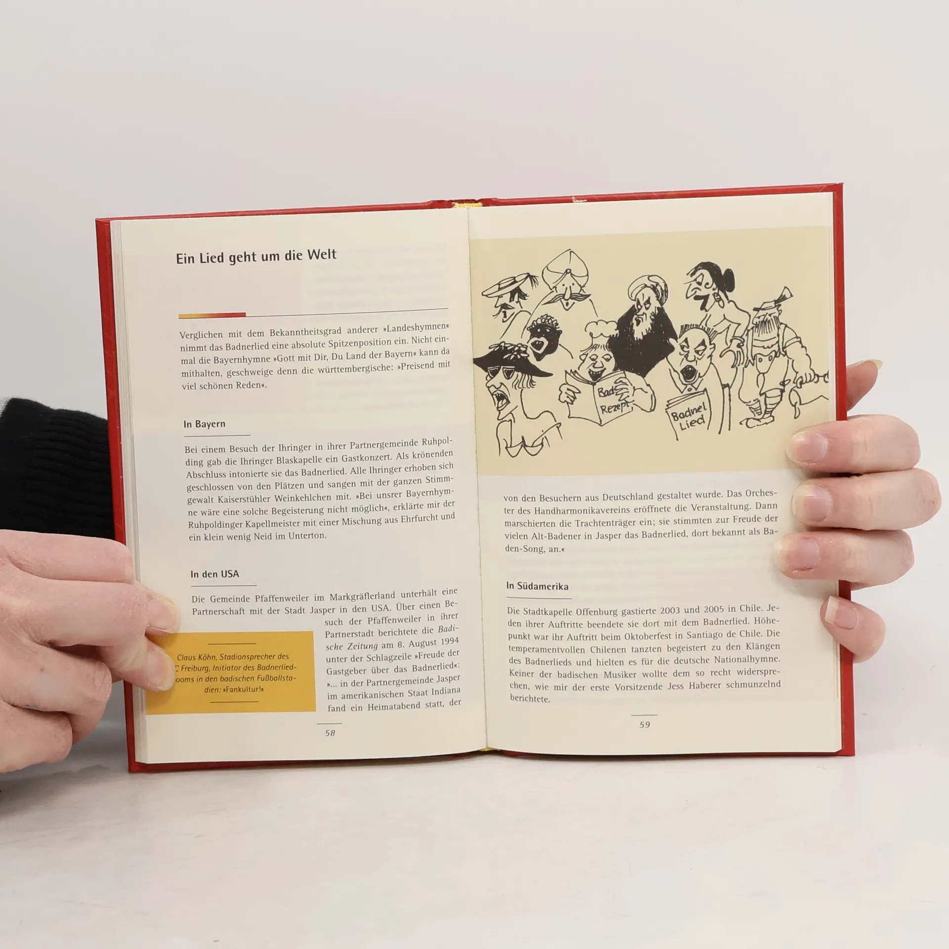 »Berufsbadener« und musikalisches Multitalent Franz Schüssele hat wieder zugeschlagen, diesmal mit seinem Buch »Das Badnerlied«. In seiner schlicht unnachahmlichen Art beackert er die badische Nationalhymne von allen erdenklichen Seiten, wobei er sich für den einen oder anderen Seitenhieb auf den geliebten schwäbischen Nachbarn (in »Ostbaden«) nicht zu schade ist. Im Laufe seiner fast 35 Jahre auf der Bühne hat Schüssele mit seiner Band »Gälfiäßler« das Badnerlied wohl über tausendmal gespielt. Die »Gälfiäßler« stehen übrigens im »Guinness Buch der Rekorde« als die Gruppe mit den meisten Musikinstrumenten – es sind 150, um genau zu sein. Im Buch steht nicht nur allerlei Scharf- und Blödsinn rund um den badischen Kult-Song. Vielmehr gibt Waltraud Linder-Beroud einen wissenschaftlich fundierten geschichtlichen Überblick über dieses einzigartige Stückchen Kulturgut aus dem Südwesten. Lesen und singen Sie mit!