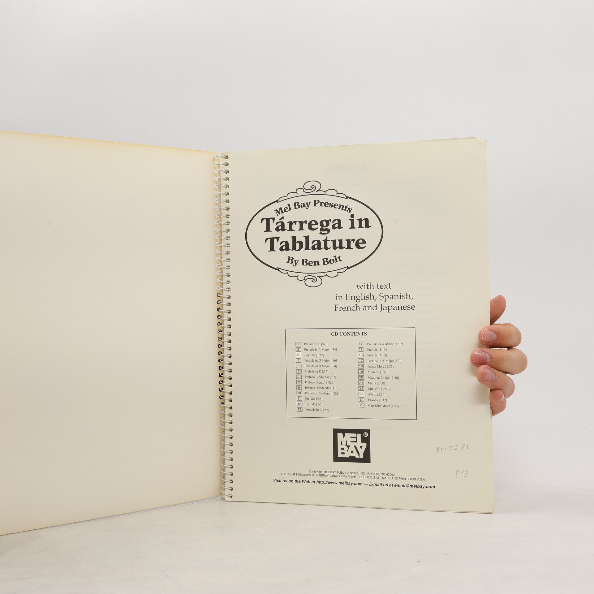 Mel Bay Presents Tarrega in Tablature with CD, Ben Bolt, Francisco Tárrega