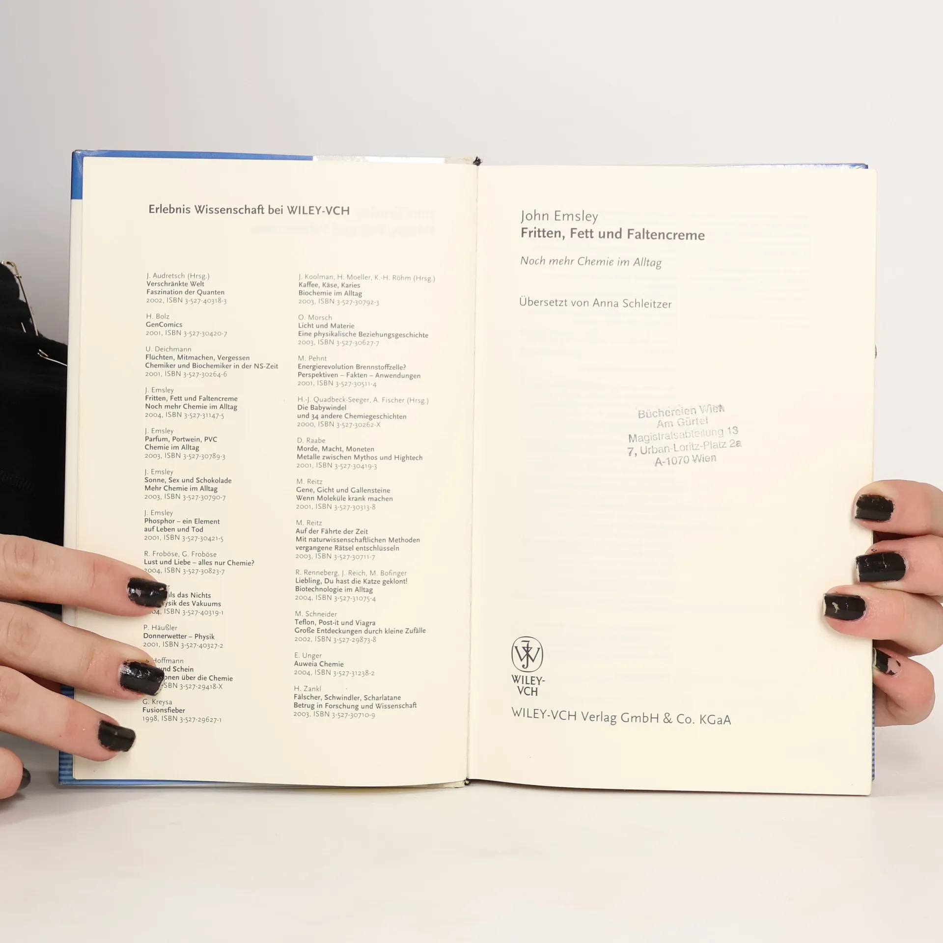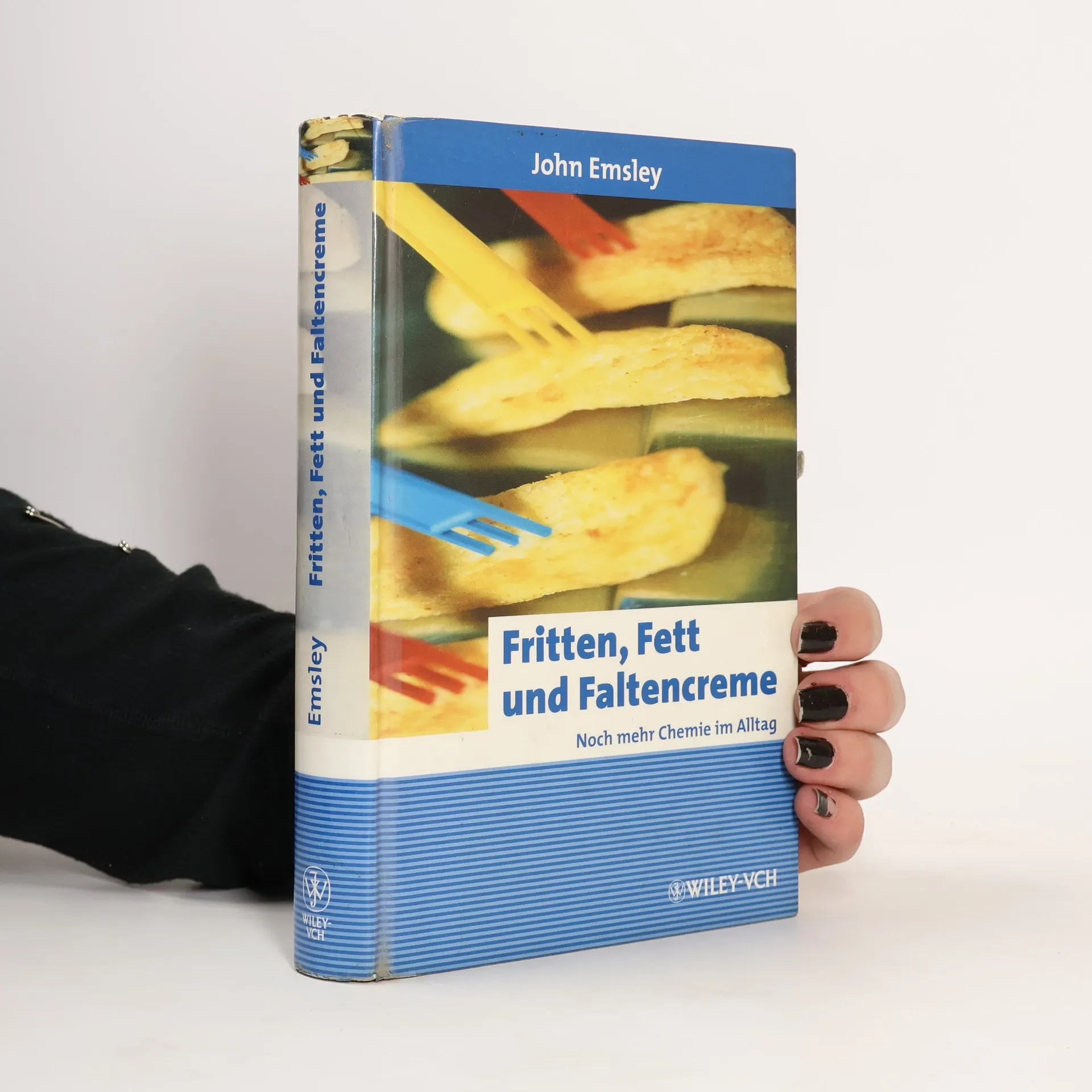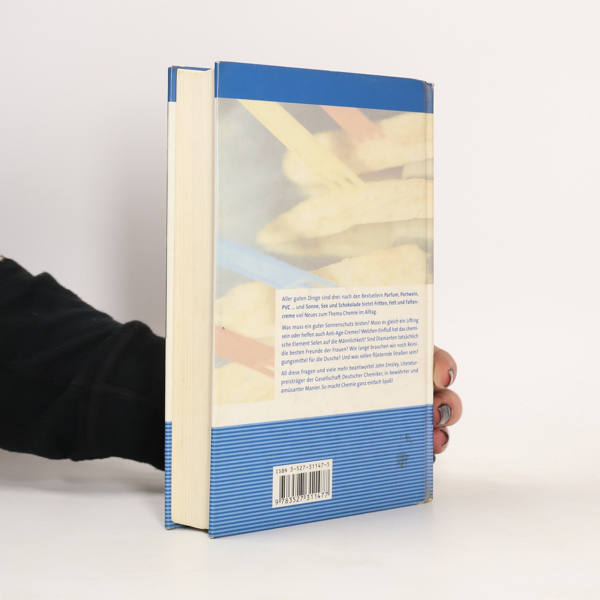 Aller guten Dinge sind drei: nach den Bestsellern „Parfum, Portwein, PVC“ und „Sonne, Sex und Schokolade“ bietet „Fritten, Fett und Faltencreme“ viel Neues zum Thema Chemie im Alltag. Was muss ein guter Sonnenschutz leisten? Welchen Einfluß hat das chemische Element Selen auf die Männlichkeit? Wie wird unsere Haut besonders geschmeidig? Sind Diamanten tatsächlich die besten Freunde der Frauen? All diese Fragen und viele mehr beantwortet John Emsley, Literaturpreisträger der Gesellschaft Deutscher Chemiker, in bewährter und amüsanter Manier.