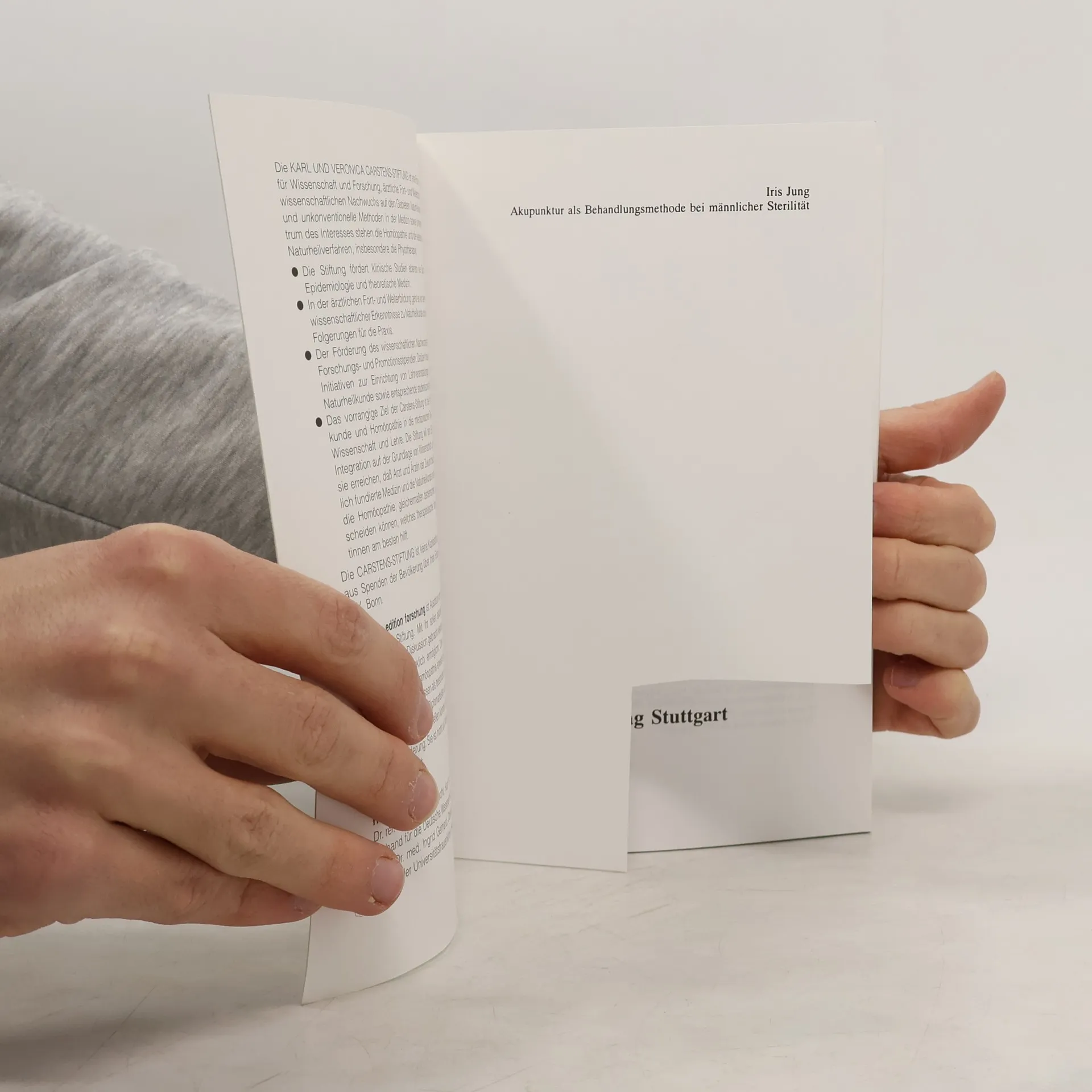 Karl und Veronica Carstens-Stiftung: Akupunktur als Behandlungsmethode bei männlicher Sterilität, Iris Jung, Henning Albrecht, Ingrid Gerhard