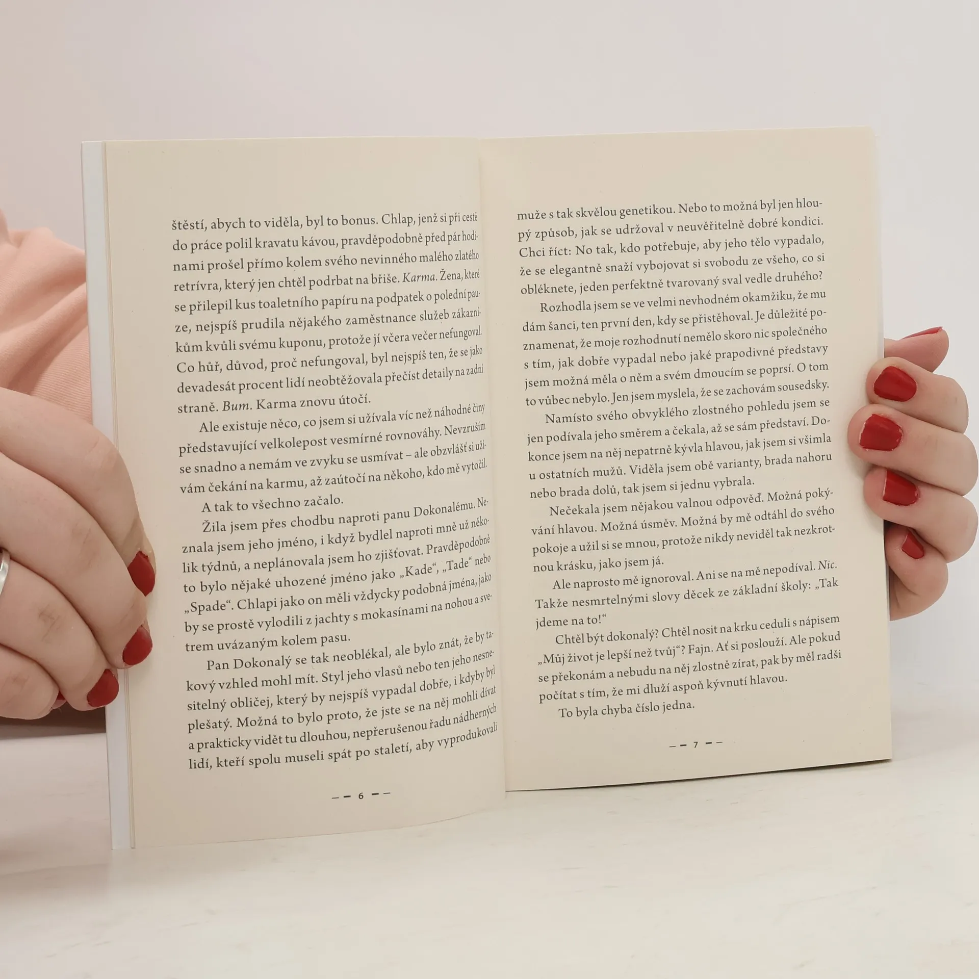 Jeho balík skončil v mé schránce. Uklidni se, úchyláku. V mé poštovní schránce. Jakmile jsem zjistila, co je uvnitř, uvědomila jsem si dvě věci: Patřil mému sexy sousedovi a ten měl temné tajemství. Většinou jsem se řadila mezi milovníky koček. V tom smyslu, že bych upřednostnila kočku v devíti z deseti případů. Nebylo to proto, že bych je měla nějak extra ráda, jen jsem neměla extra ráda většinu lidí. Můj soused mezi většinu lidí nepatřil. Žil v bytě naproti mně a byl to ten typ perfektně oblečeného chlapa v nóbl botách, který voněl jako reklama na Calvina Kleina a navíc to vypadalo, že ví, jak se používá dentální nit. Ale k věci, tenhle chlap měl očividně svůj život pečlivě uspořádaný. Byl to pan Dokonalý, ale co se mě týká, potřeboval by trochu srazit hřebínek. A jako na zavolanou jeho dlouhý, tlustý balík pronikl do mé malé, úzké poštovní schránky. Vím. Naprosto nechutné. Evidentně to byl trik, jak po mně vyjet. Pomineme-li fakt, že ho tam dala pošťačka, věděla jsem, co hraje můj soused za hru. Ano, naprosto přesně jsem to věděla. Tak jdeme do toho. Nebo spíš na to, pokud chcete. Omylem mi v bytě na balík několikrát spadl nůž. Prakticky se sám otevřel a já neměla na výběr, než se do něj podívat. Z balíku na mě koukalo jeho malé tajemství. Jak se ukázalo, pan Dokonalý nakonec nebyl tak dokonalý. Kdo by to byl tušil? Nápověda: Já ano. Ale naprosto jsem si hodlala užít každou vteřinu toho, co mělo přijít.