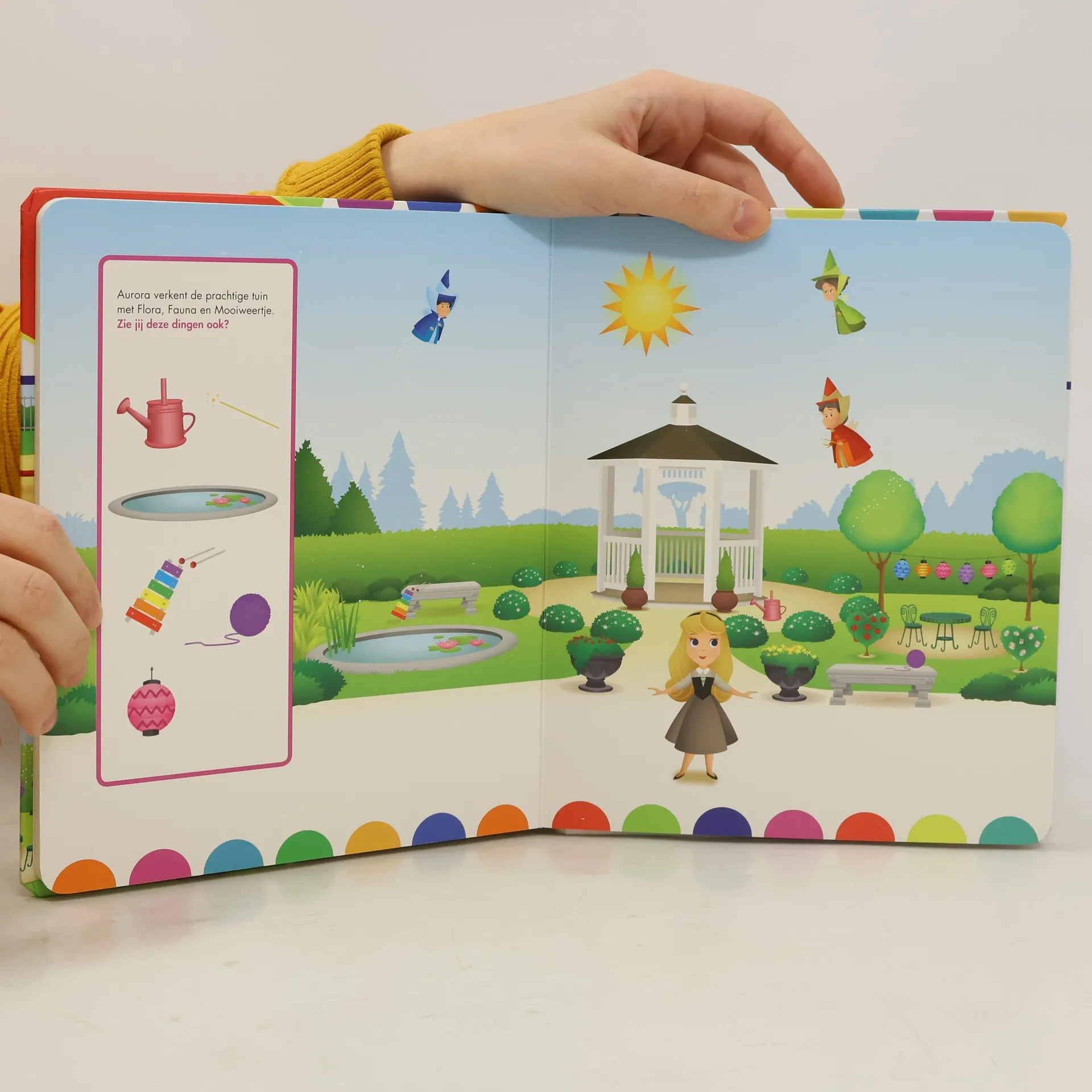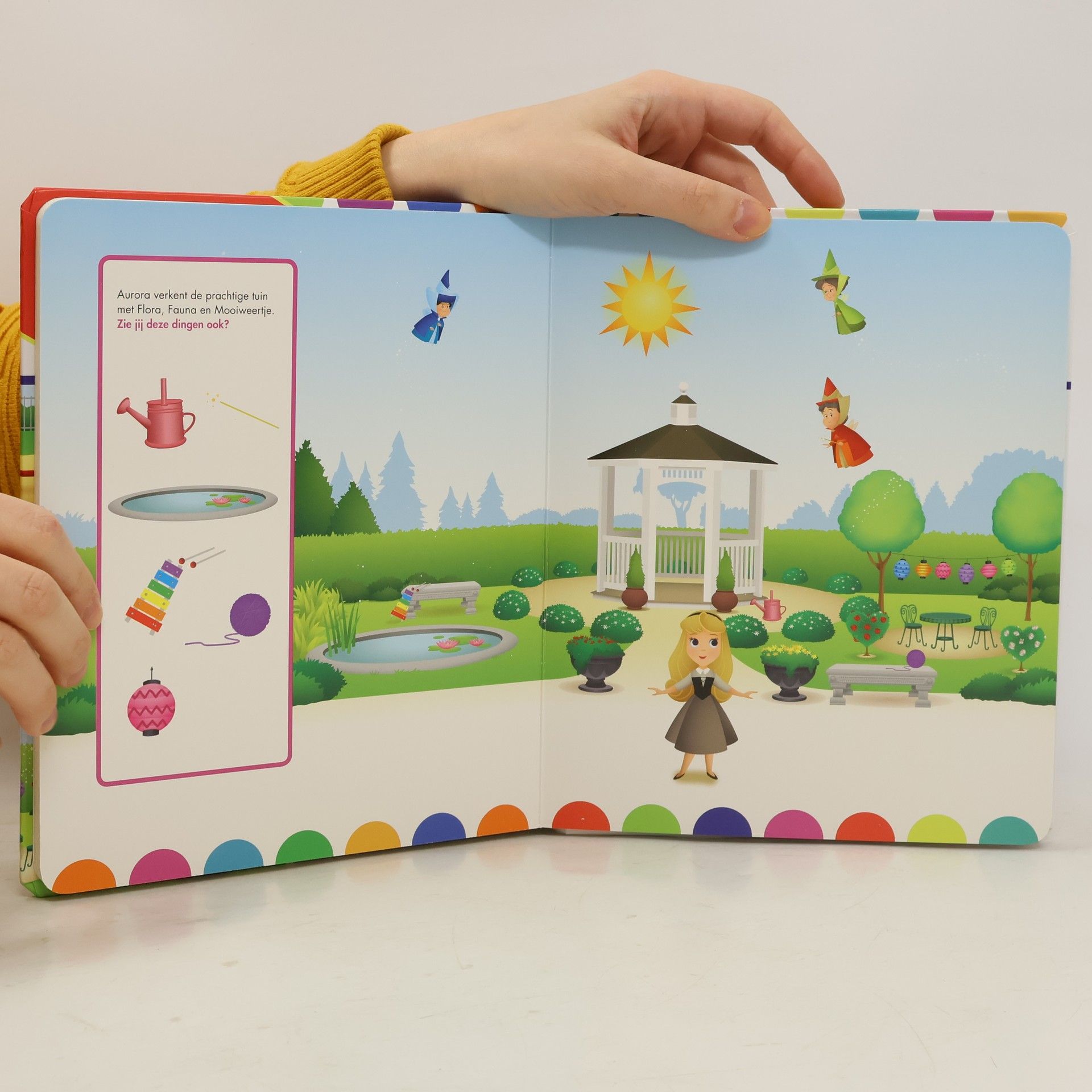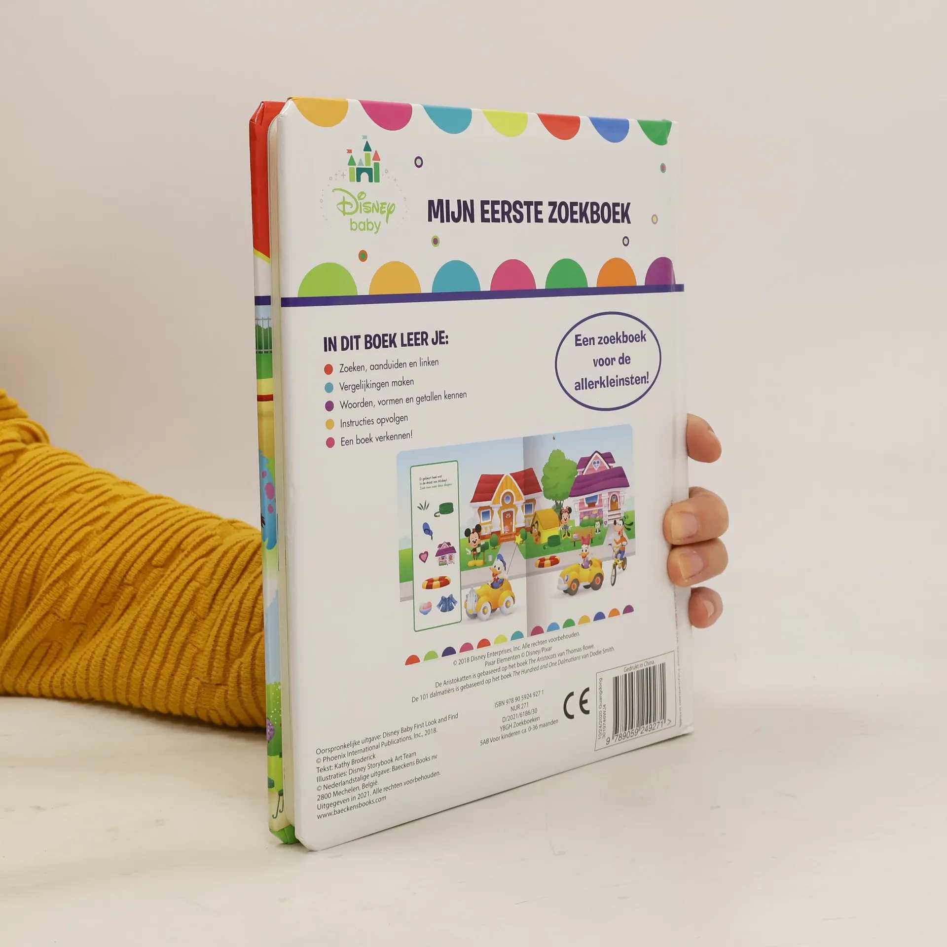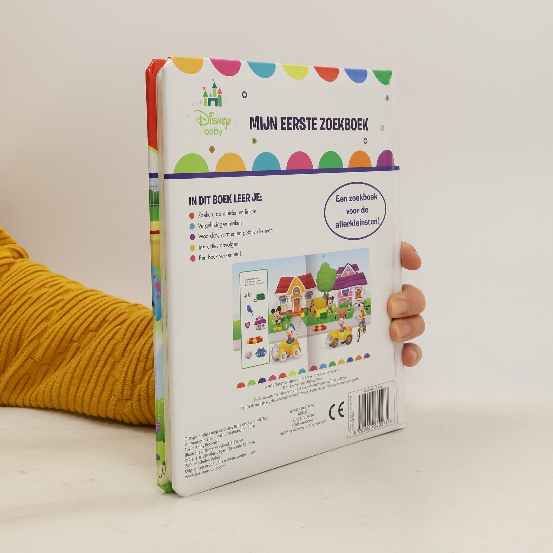 Help je Mickey om alle spullen in zijn straat te vinden? En ook Boo,Mike en Sully in de speeltuin en Aurora in de tuin? En kun je de dieren met een zachte vacht en die met veren aanwijzen? Hardkartonnen prentenboek met vrolijke kleurenillustraties van bekende Disney-personages en zoek- en aanwijsopdrachten. Vanaf ca. 2 jaar.