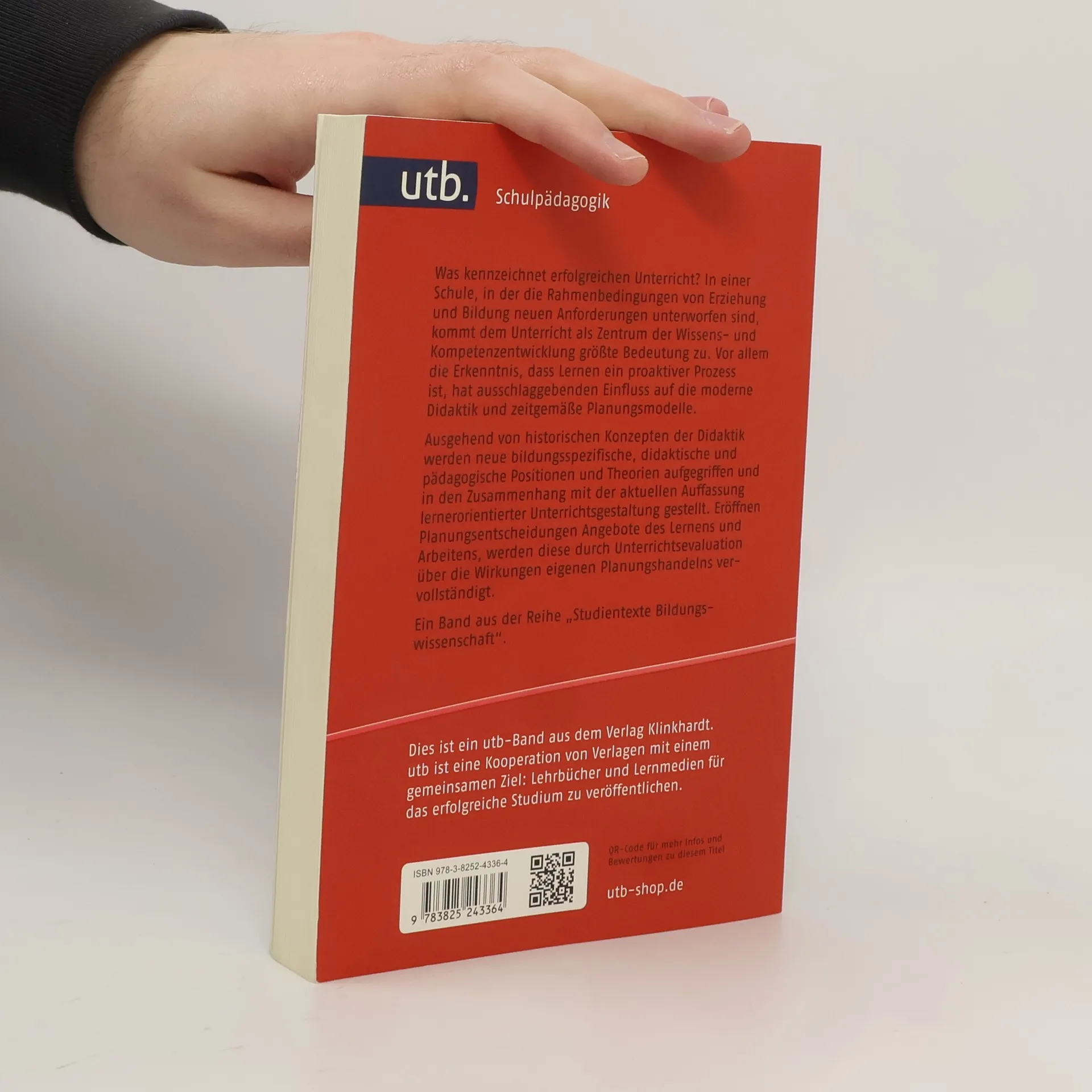 Was kennzeichnet erfolgreichen Unterricht? In einer Schule, in der die Rahmenbedingungen von Erziehung und Bildung neuen Anforderungen unterworfen sind, kommt dem Unterricht als Zentrum der Wissens- und Kompetenzentwicklung größte Bedeutung zu. Ausgehend von historischen Konzepten der Didaktik werden neue bildungsspezifische, didaktische und pädagogische Positionen und Theorien aufgegriffen und in den Zusammenhang mit der aktuellen Auffassung lernorientierter Unterrichtsgestaltung gestellt. Eröffnen Planungsentscheidungen Angebote des Lernens und Arbeitens, werden diese durch Unterrichtsevaluation ergänzt. Ein Band aus der Reihe „Studientexte Bildungswissenschaft“ der sich für alle Phasen des Lehramtsstudiums empfiehlt.