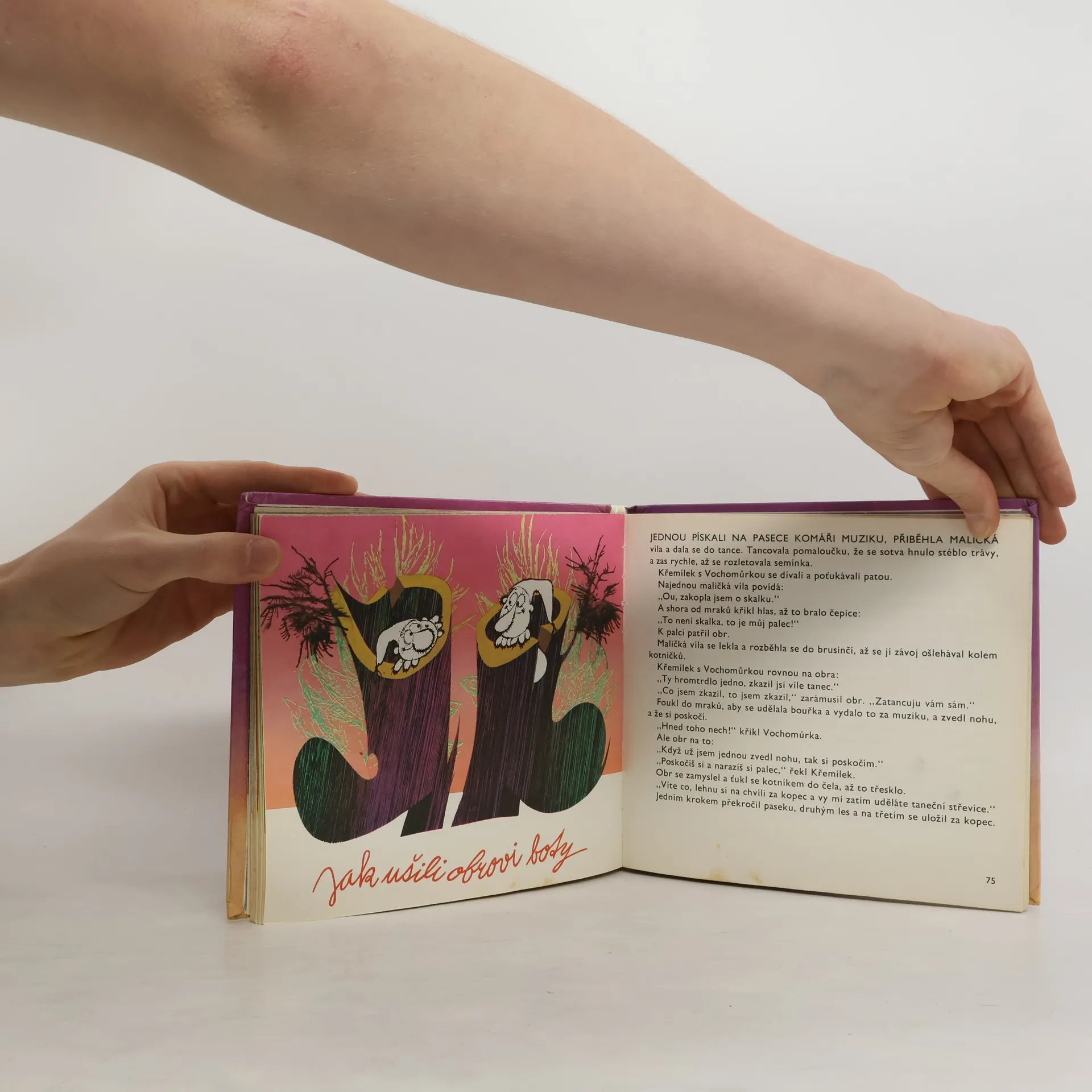 Veselé vyprávění o dvou lesních skřítcích, kteří otvírali studánku, zasadili semínko, učesali vílu, rozpálili ohnivého mužíka, zmizeli drakovi, měli trápení s rakem, ušili obrovi boty, šli na pařezy, pekli kaštany apod. Knižní zpracování pohádek, určených pro dětské vysíláníČs. televize.