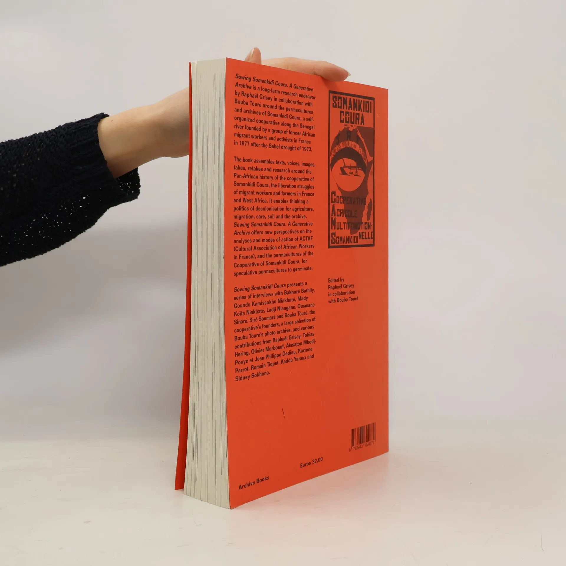 Sowing Somankidi Coura. A Generative Archive is a long-term research endeavor initiated by Raphaël Grisey in collaboration with Bouba Touré. The project revolves around the permacultures and archives of Somankidi Coura, a self-organized cooperative along the Senegal river. The cooperative was founded in 1977 by a group of former African migrant workers and activists in France after the Sahel drought of 1973. The book assembles texts, voices, images, takes, retakes and research around the Pan-African history of the cooperative of Somankidi Coura, the liberation struggles of migrant workers and farmers in France and West Africa. It enables thinking a politics of decolonisation for agriculture, migration, care, soil and the archive. Sowing Somankidi Coura. A Generative Archive offers new perspectives on the analyses and modes of action of ACTAF (Cultural Association of African Workers in France), and the permacultures of the Cooperative of Somankidi Coura, for speculative permacultures to germinate