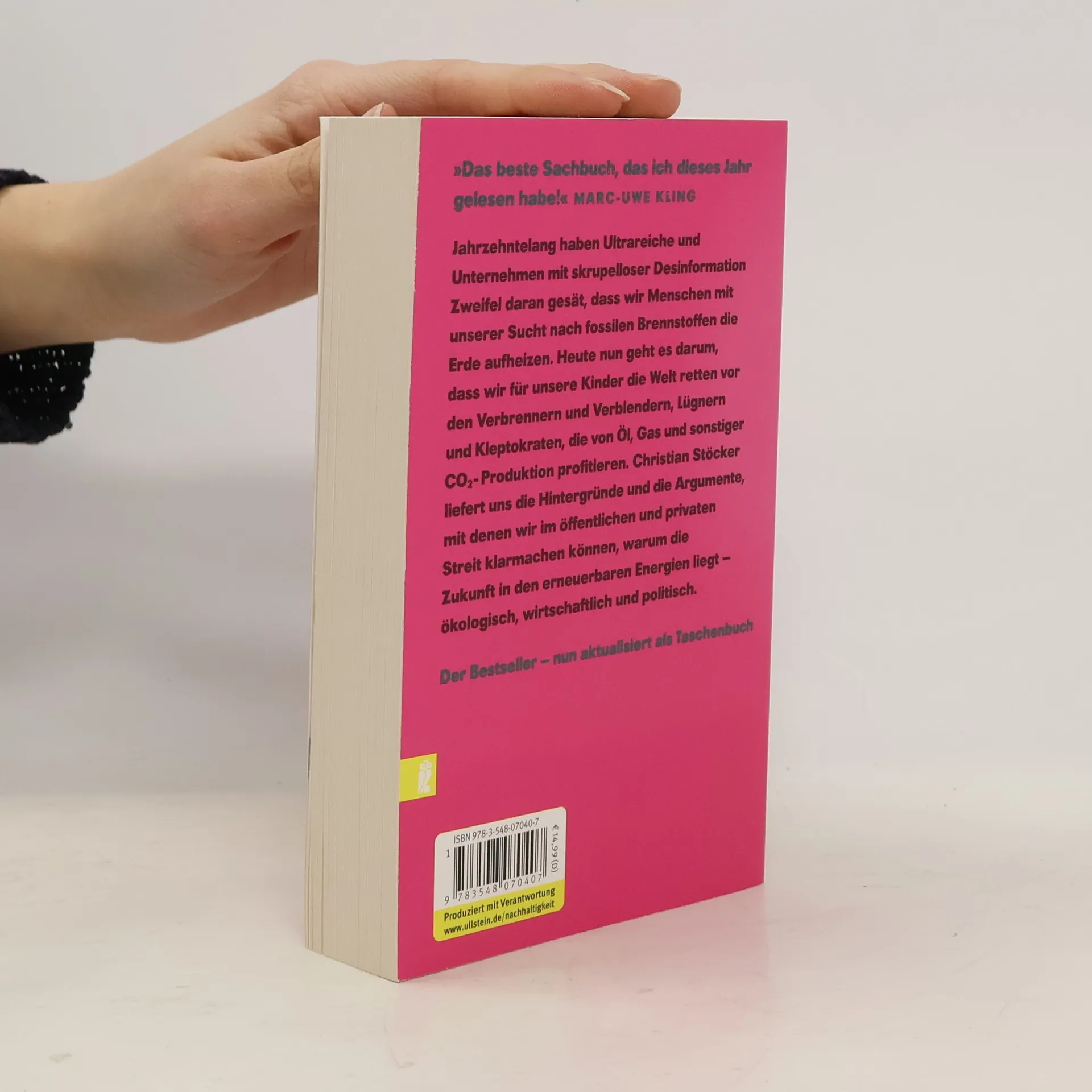 Die Welt befindet sich in der Endphase eines Kulturkampfs zwischen Gier und Gerechtigkeit, Zerstörung und Nachhaltigkeit, Zynismus und Empathie. Dies wird besonders deutlich in den Reaktionen auf die Klimakatastrophe: Während einige versuchen, das Schlimmste zu verhindern, streben andere nur nach Profit aus fossilen Brennstoffen. Über Jahrzehnte haben Reiche und Unternehmen, die von CO₂-Emissionen profitieren, mit gezielter Desinformation Zweifel an der menschengemachten Erderwärmung gesät. Die Hauptprofiteure der Klimazerstörung sind oft Personen, die wenig mit demokratischen Werten und Menschenrechten zu tun haben; ihre Unterstützung für fossile Brennstoffe geht häufig mit reaktionären Ansichten einher. Dieses Kartell umfasst Figuren wie Mohammed bin Salman, Wladimir Putin und Donald Trump, unterstützt von Akteurinnen wie Sahra Wagenknecht. In vielen aktuellen politischen Diskursen und militärischen Konflikten stehen CO₂ und Geld im Mittelpunkt. Christian Stöcker betont die Dringlichkeit, die Welt für zukünftige Generationen vor den Verbrennern, Verblendern, Lügnern und Kleptokraten zu retten, die von Öl und Gas profitieren. Er liefert überzeugende Argumente, um im öffentlichen und privaten Streit klarzustellen, dass das fossile Zeitalter zu Ende geht und die Zukunft in erneuerbaren Energien liegt.
